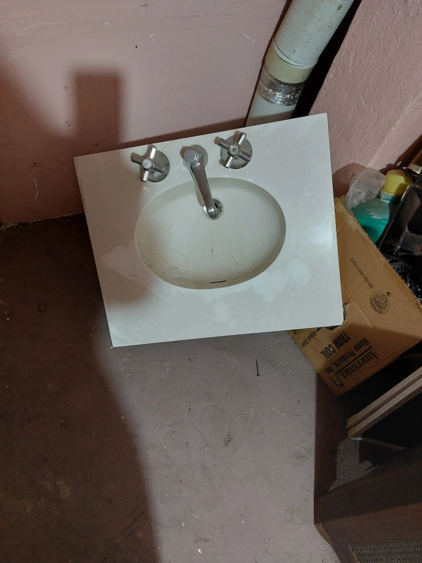 53 st. \\.Here's a bathroom sink ready for a new home! It's in used condition, but still has plenty of life left. Perfect for a DIY project or a bathroom upgrade. 20" deep x 24 wide .off white. sink andcfawcett.