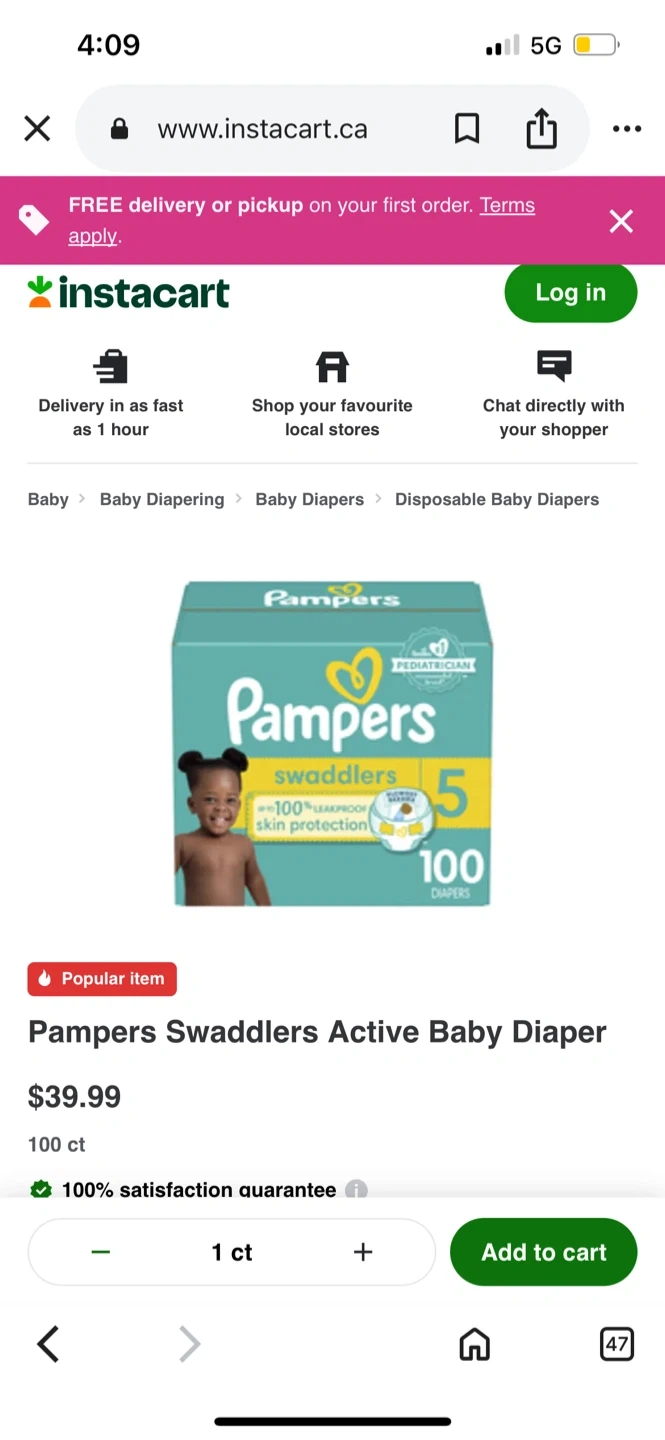 Walmart Price $32.97 Selling a pack of Pampers Swaddlers diapers, size 5. This pack contains 100 diapers, perfect for keeping your little one comfy and dry. They offer up to 100% leakproof skin protection, so you can have peace of mind!