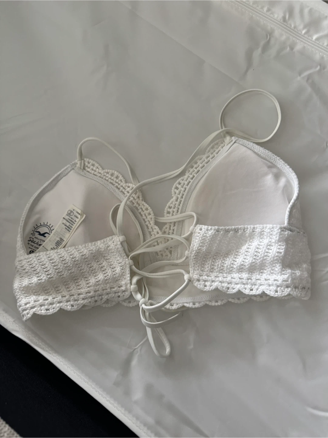 Selling a cute Hollister white crochet bikini top in size medium. It's in great condition and perfect for summer!