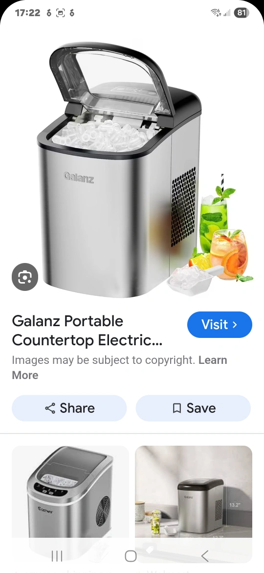 New Galanz Portable Countertop Electric Ice Maker Machine, 26 lbs in 24 Hours, Bullet Shaped in 2 Sizes, 2.1 L, Stainless Steel. It's New, in great working condition and perfect for making ice quickly at home! It has settings for small or large ice cubes and indicators for when the ice is full or when water needs to be added I bought it 171+ tax.