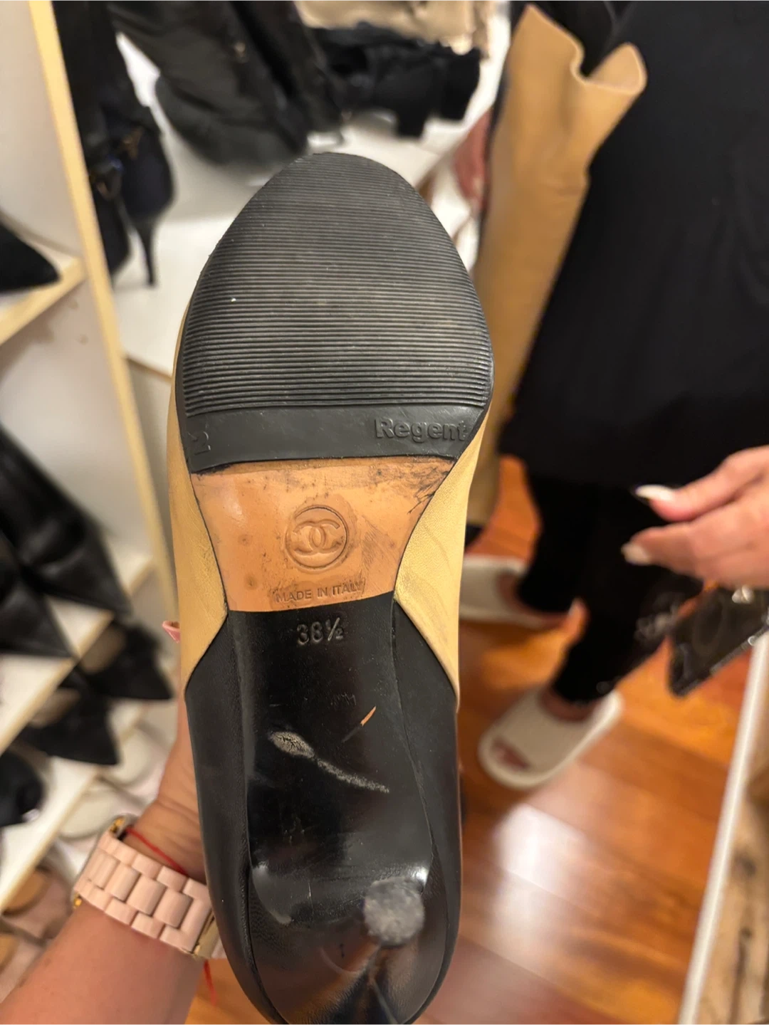 Chanel Two-Tone Leather Knee High Boots Size 36.5
