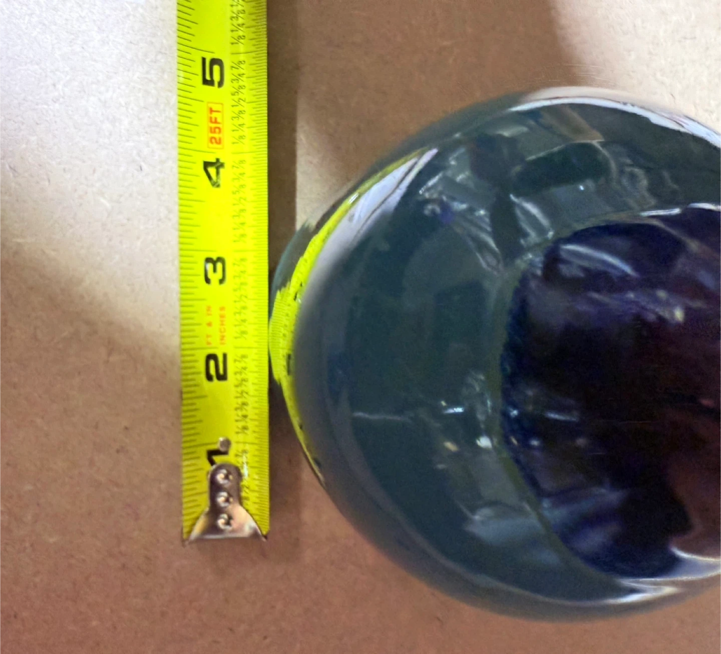 A beautiful blue ceramic vase. It's about 7 inches tall and 4 inches wide. It would look great with flowers or as a decorative piece.