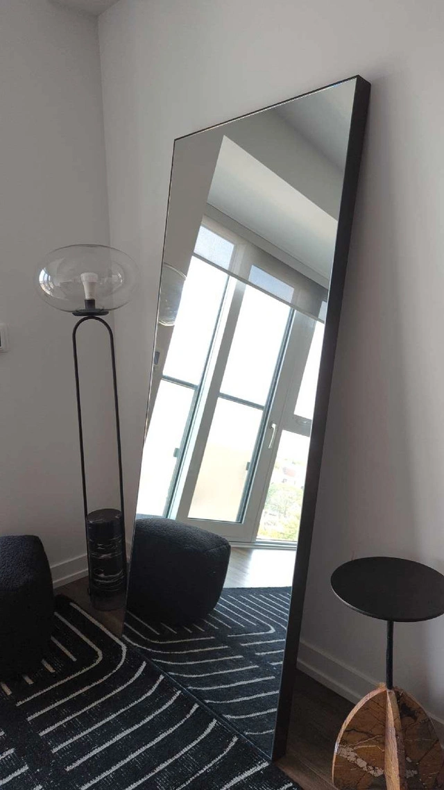 Bought this last year, and it's still available on CB2 website Cost 599$ plus taxes. Selling for 290$. Beautiful piece. Heavy. Pick-up near College/Bathurst Will post photos of actual item shortly Bordered by a sleek matte black frame, modern floor mirror has a clean finish that can live easily in the bathroom, kitchen, office or bedroom. CB2 exclusive. Width: 32"(81.28 cm) Depth: 2.25"(5.72 cm) Height: 76"(193.04 cm)
