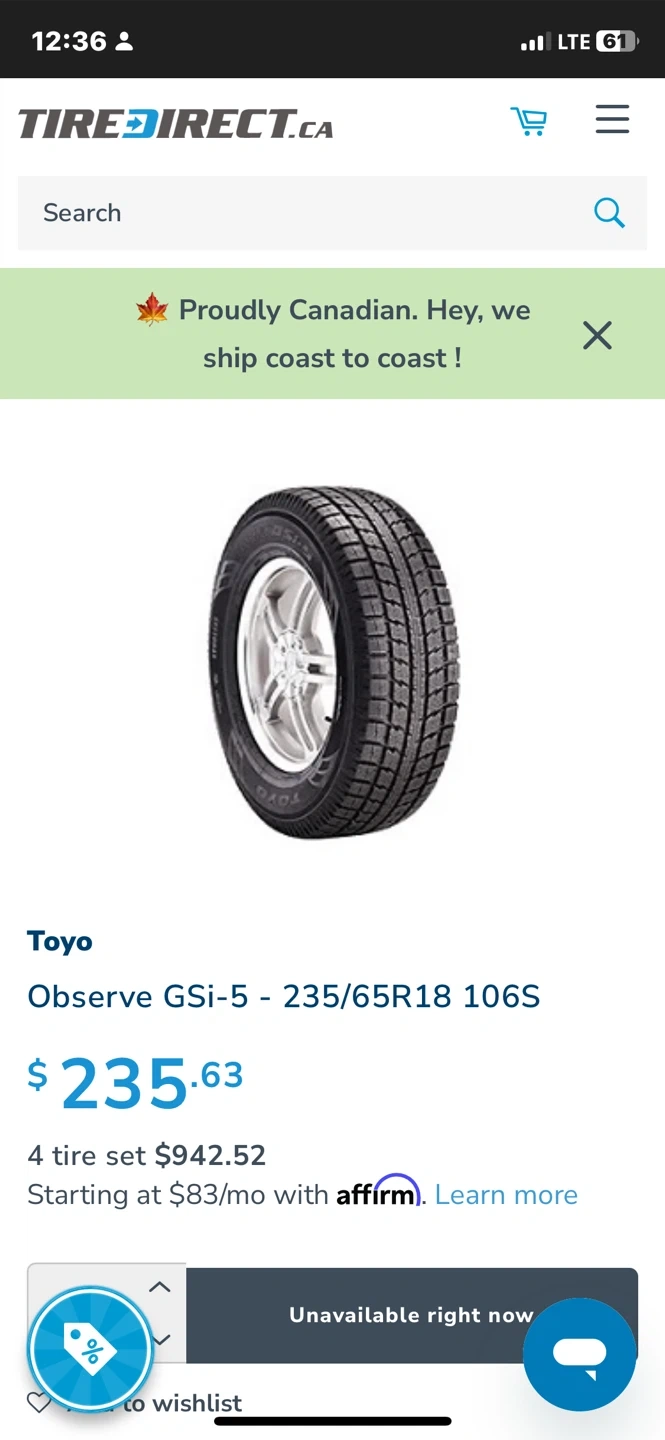 Toyo Observe GSi-5 Winter Tire 235/65R18
