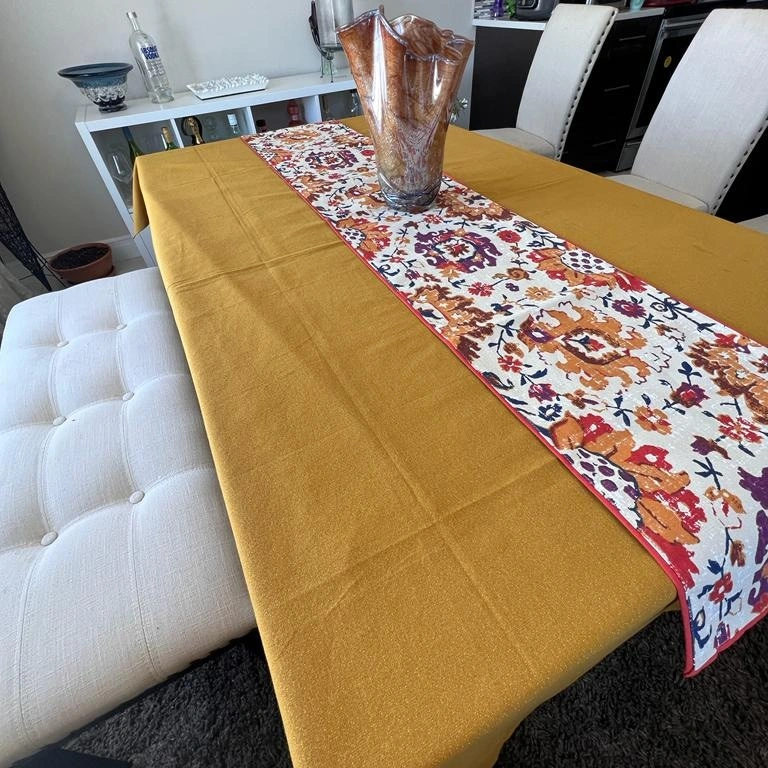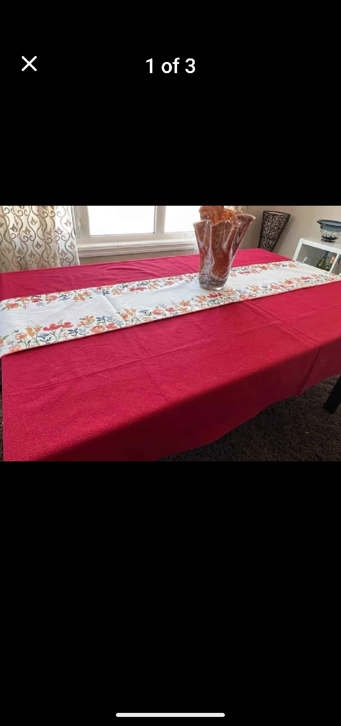 10Selling lovely floral table runners! They're perfect for adding a pop of colour and pattern to your dining table. Each runner features a unique floral design, bringing a touch of elegance to any meal or gathering. Also selling rectangular table cloths. red and mustard in color