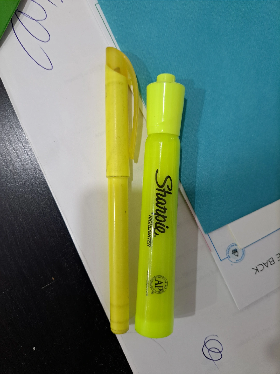 Selling 2 highlighters in yellow. It's in used condition but still works great for highlighting your notes or documents! Pick-up only
