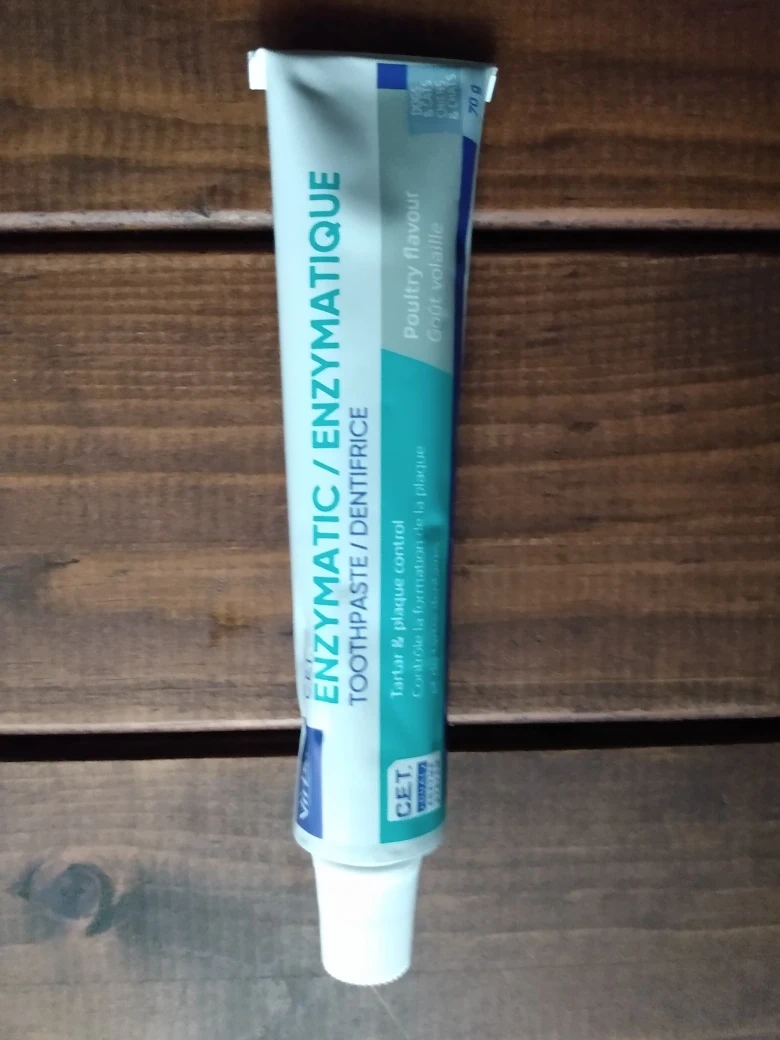 Selling a tube of CET Enzymatic toothpaste for your furry friends! It's poultry flavoured and helps with tartar and plaque control. This toothpaste is suitable for both dogs and cats, and the tube contains 70g of product