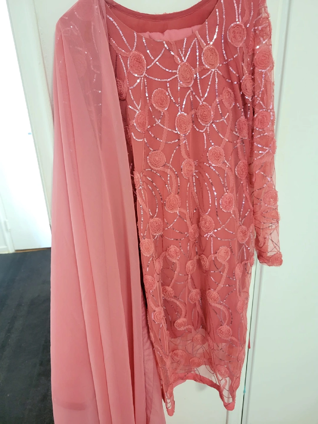 Selling a lovely pink salwar kameez. It features beautiful embroidery and comes with a matching dupatta. Perfect for a special occasion!