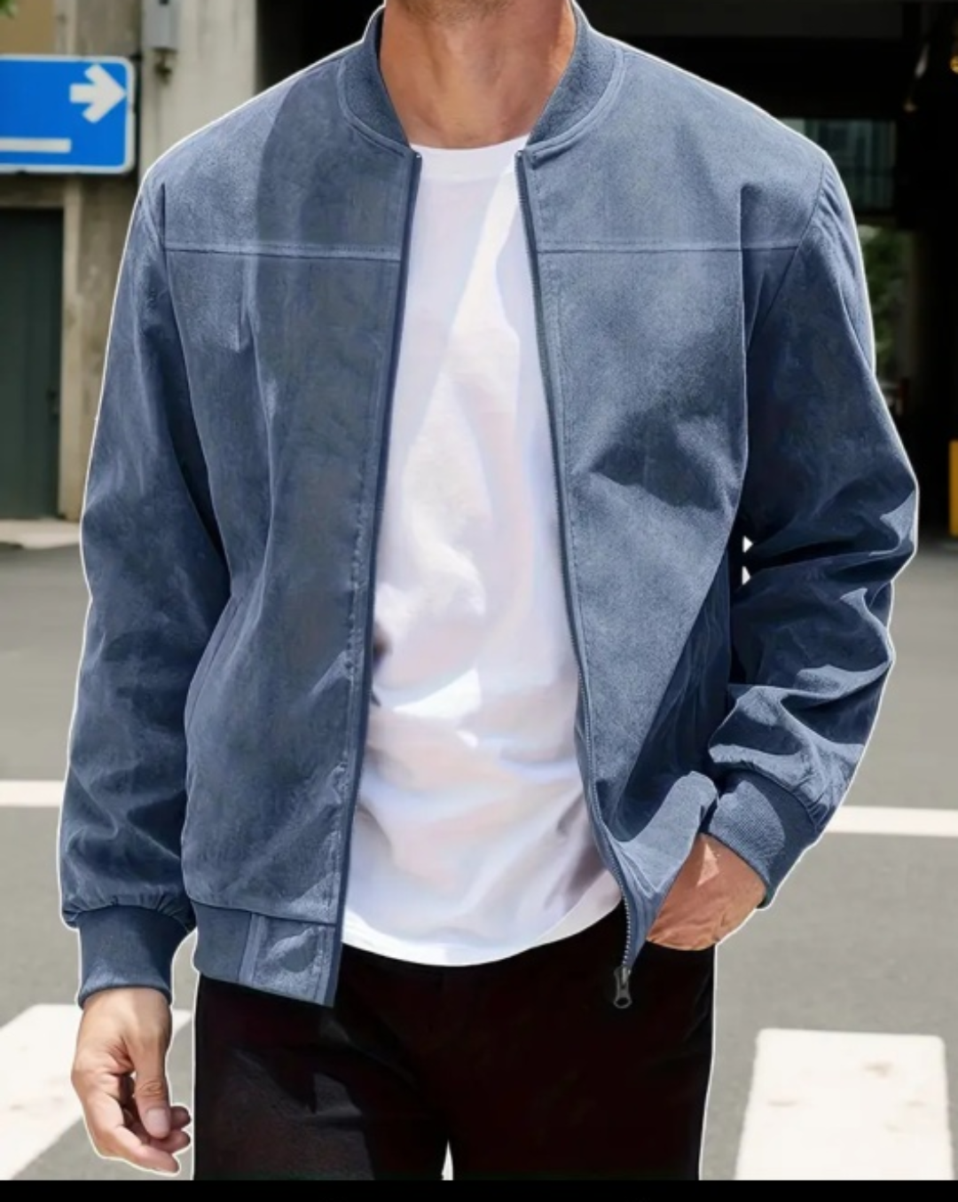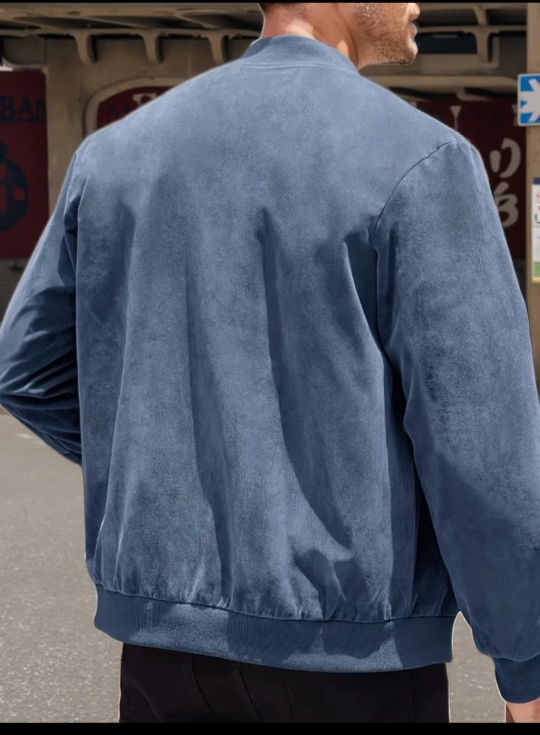 Stylish Men's Casual Zip-Up Jacket - Navy Blue, Polyester, Long Sleeve, Stand-Up Collar, Zippered Pockets, Perfect for Spring & Autumn, Autumn Jacket | Sleek Navy Jacket | Zippered Closure