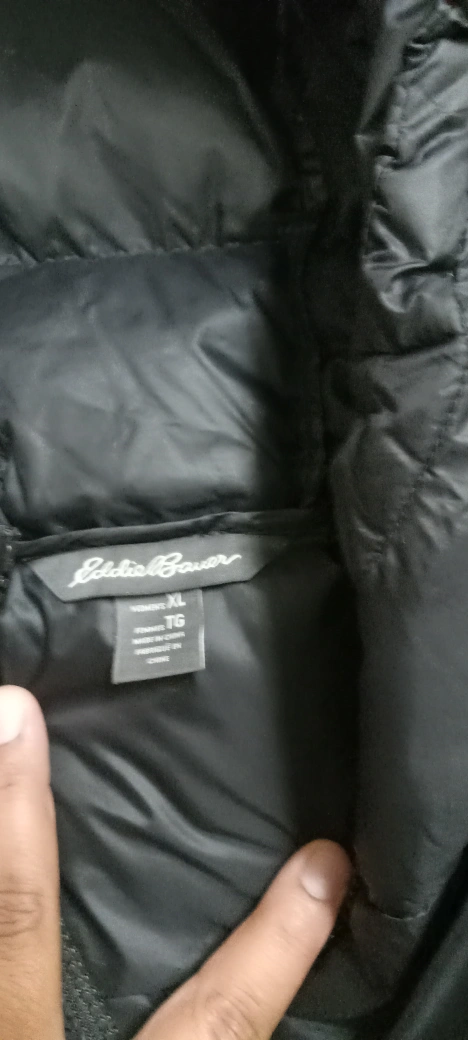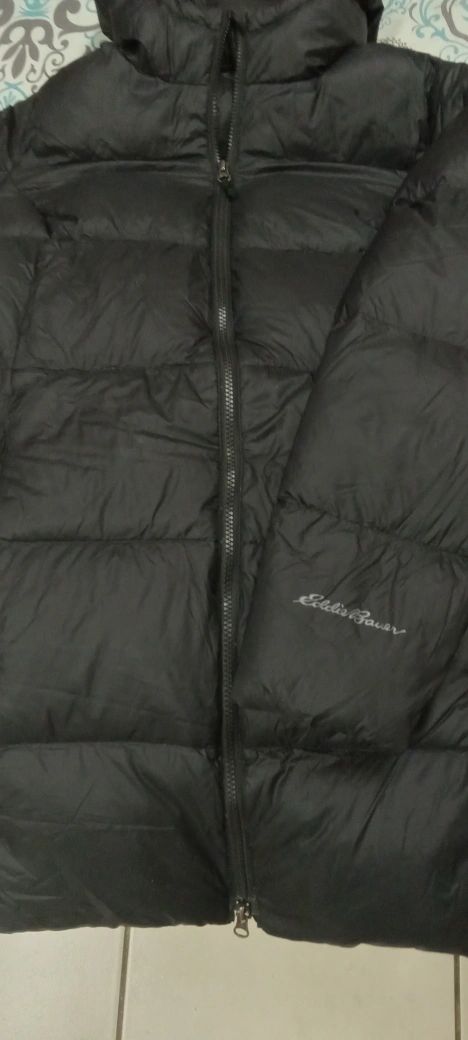 Selling a gently used Eddie Bauer EB550 down puffer jacket in black. It's in great condition and perfect for staying warm during the colder months. Features a full zipper and a cozy hood. The EB550 indicates the fill power of the down, meaning it's nice and toasty!