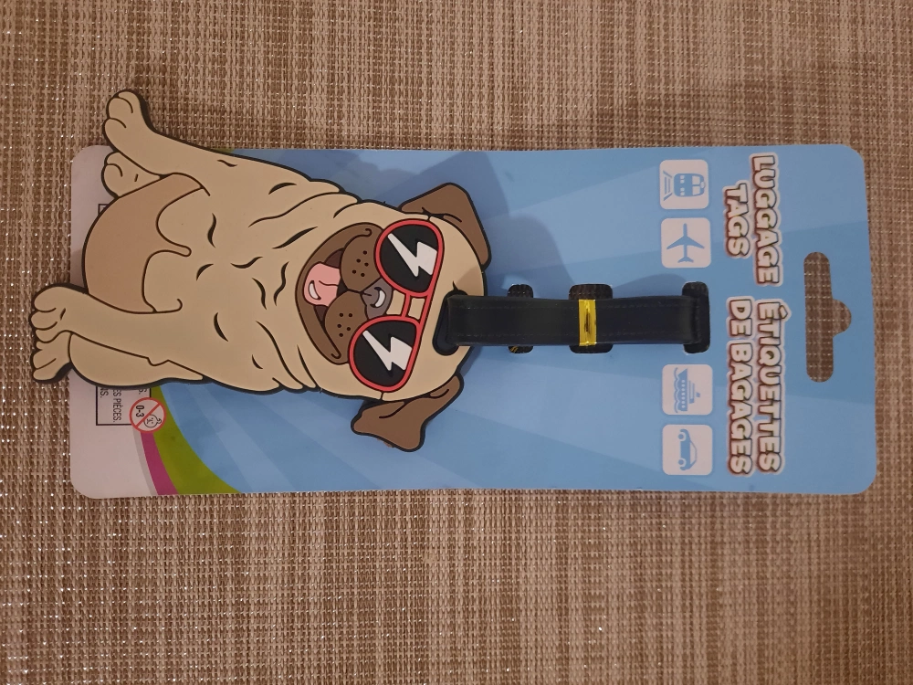Brand new luggage tag featuring an adorable pug wearing sunglasses! Perfect for adding some fun and personality to your travel gear