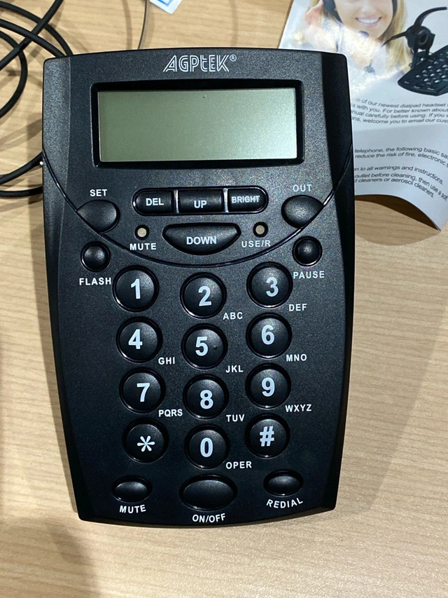 I'm selling a new AGPTEK Call Center Dialpad Headset Telephone. This telephone features a dialpad and headset, perfect for call centers or home offices. It's in new condition, complete with the original box and manual, ready to enhance your communication setup. Here are some of its features: