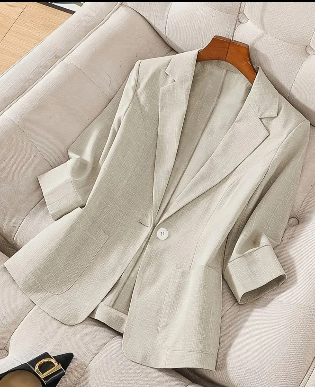 Selling a beige blazer in size XL. It's a lovely linen blend, perfect for spring or summer! The neutral colour makes it easy to pair with any outfit. Grab it before it's gone