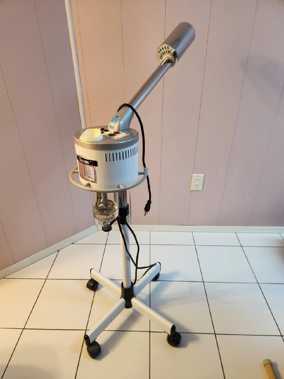 Selling a facial steamer. It's in great condition and ready to use for your home spa days! It features a sturdy base with wheels for easy movement.