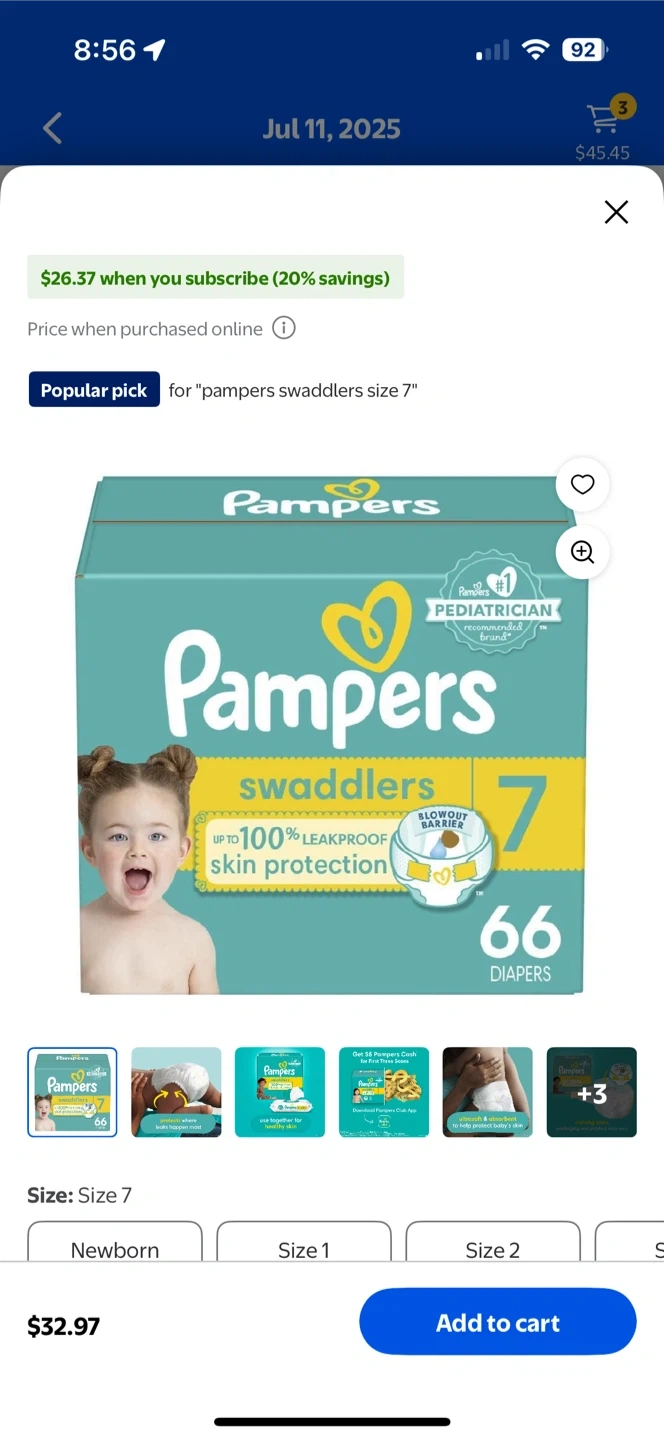 Selling a box of Pampers Swaddlers diapers, size 7. There are 66 diapers in the box. These are designed for up to 100% leakproof skin protection, and are the #1 pediatrician recommended brand!
