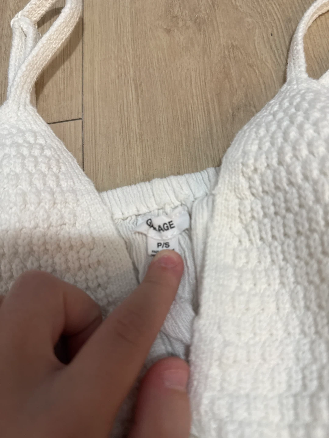 15Selling a cute white knit top from Garage! It's a size P/S (Petite/Small) and in great condition. Perfect for summer!