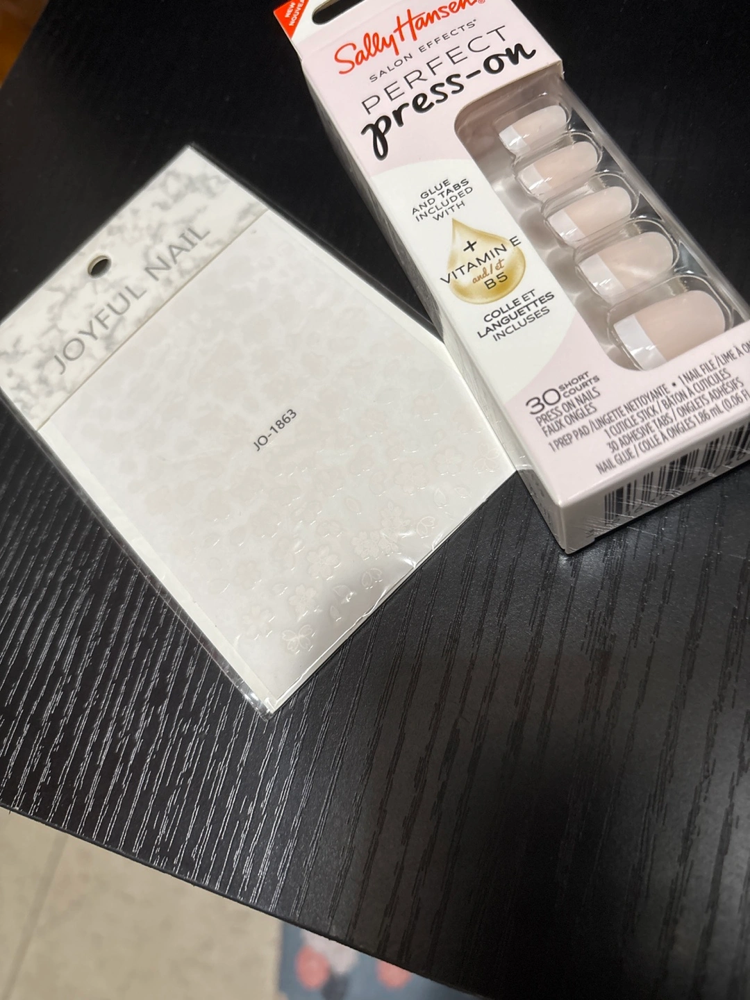 Selling a set of Sally Hansen Perfect Press-On nails. They are short length and come with 30 press on nails, cuticle stick, 30 adhesive tabs, nail file and nail glue. Also included is a sheet of Joyful Nail stickers to add some extra flair