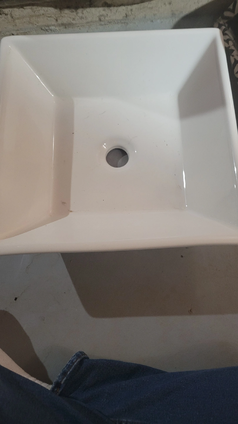 Selling a white square bathroom sink. It's in good condition and ready to be installed in your bathroom renovation project
