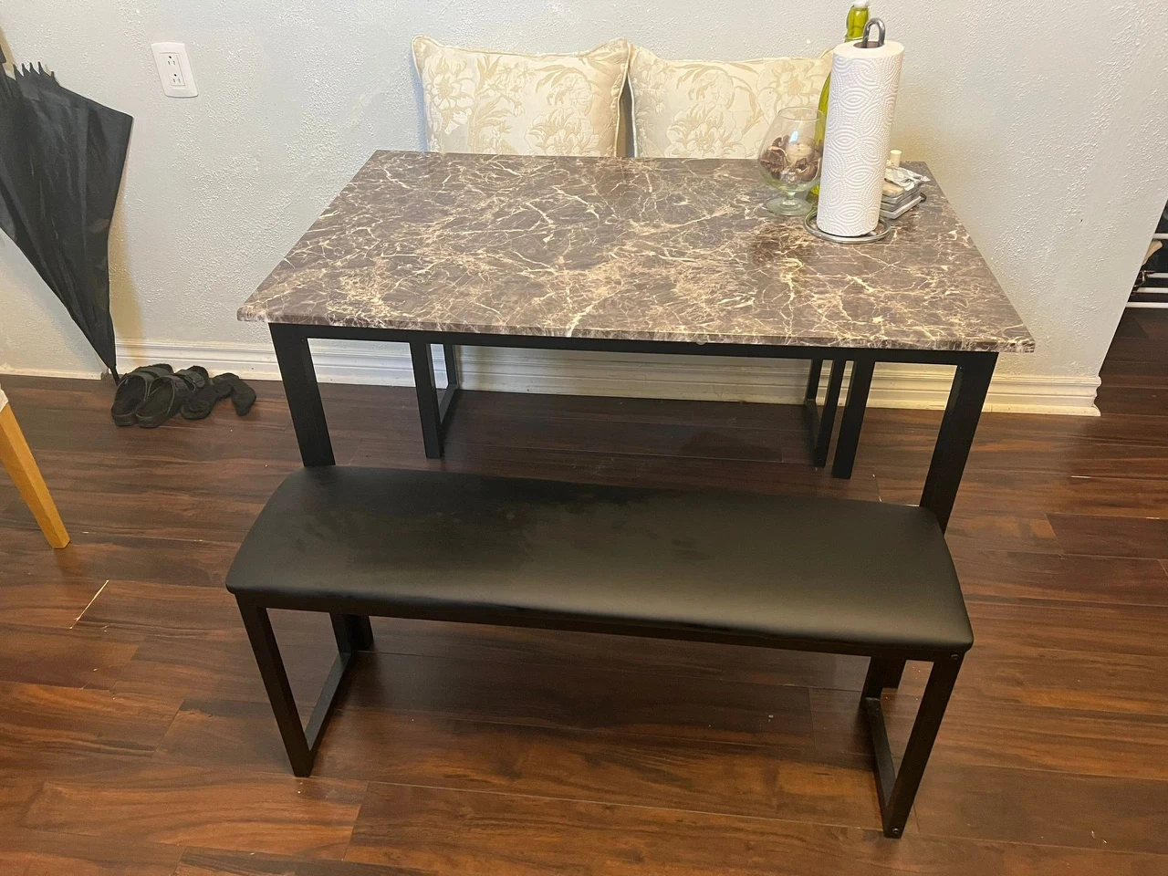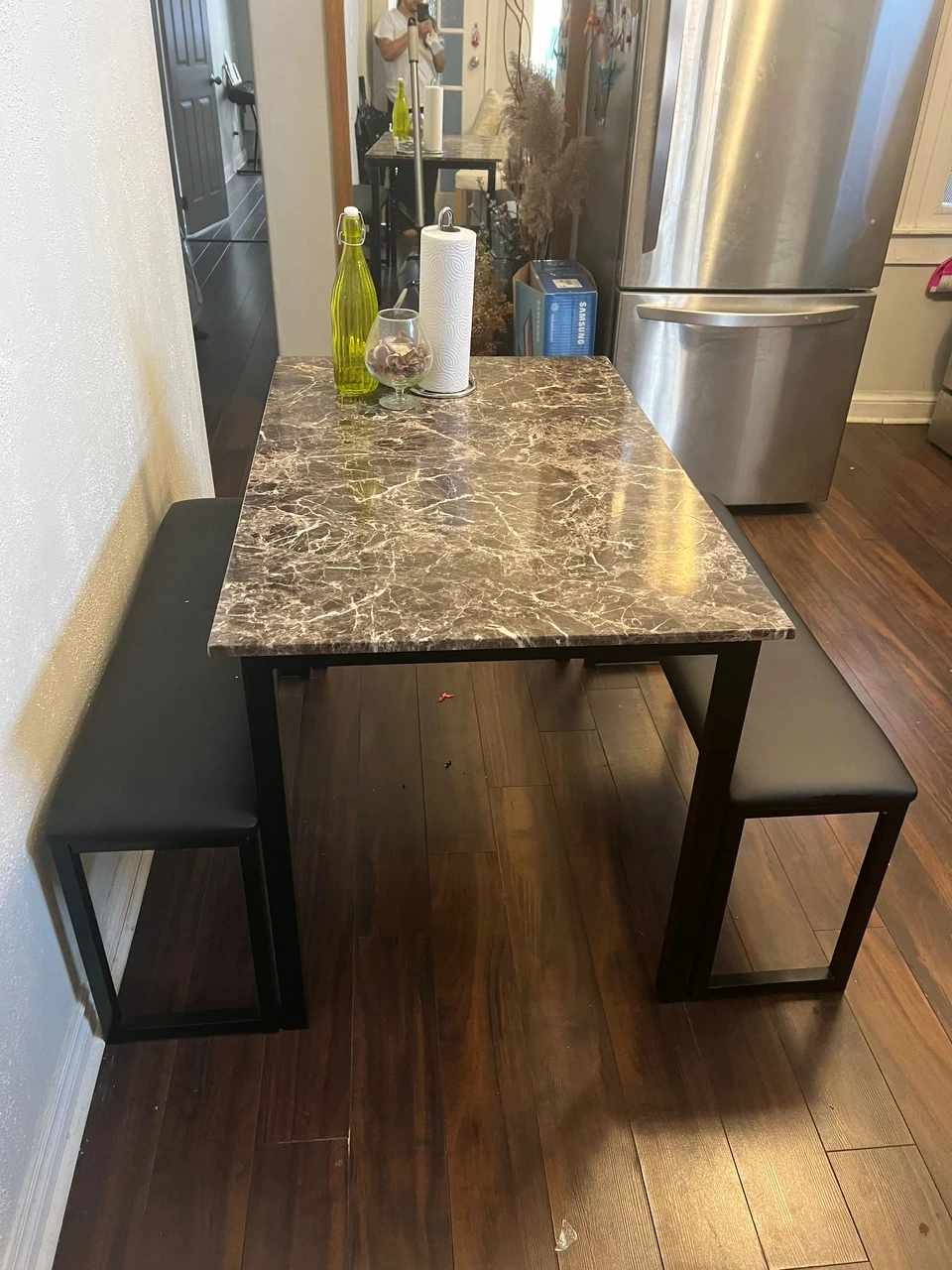 Dinning table set with 2 benches perfect for small or mid size kitchens.
