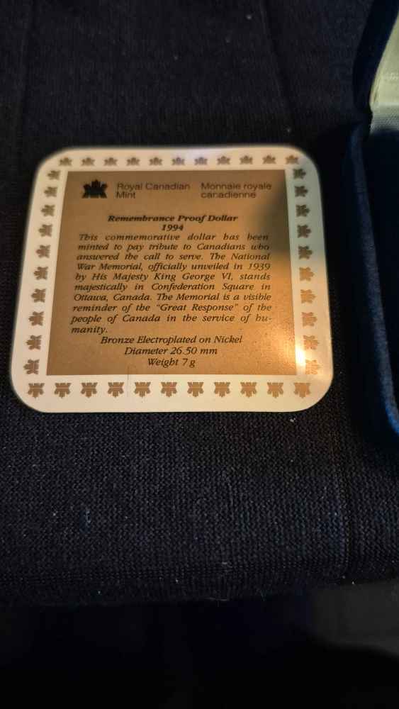 1994 Royal Canadian Mint Remembrance Proof Dollar