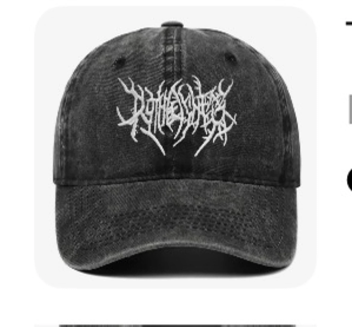 Selling a distressed black baseball cap with the Rotting Out logo embroidered on the front. It's in great condition and ready for a new home!
