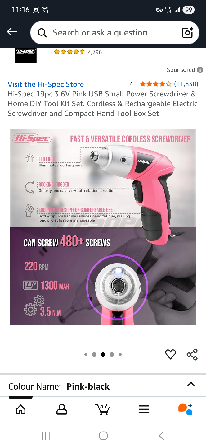 Hi-Spec 19pc 3.6V USB Small Power Screwdriver & Home DIY Tool Kit Set. Cordless & Rechargeable Electric Screwdriver and Compact Hand Tool Box Set. It comes with a USB for charging.