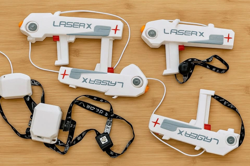 Level up family game night or backyard battles! Selling a complete Laser X laser tag set with 4 blasters and 4 sensor vests. Everything works great and is ready for hours of fun. Perfect for kids, teens, or even adults who want a little friendly competition. ✨ Features: Includes 4 Laser X blasters + 4 receiver chest plates Works indoors or outdoors Lights & sounds for real arcade-style play Adjustable straps for all ages