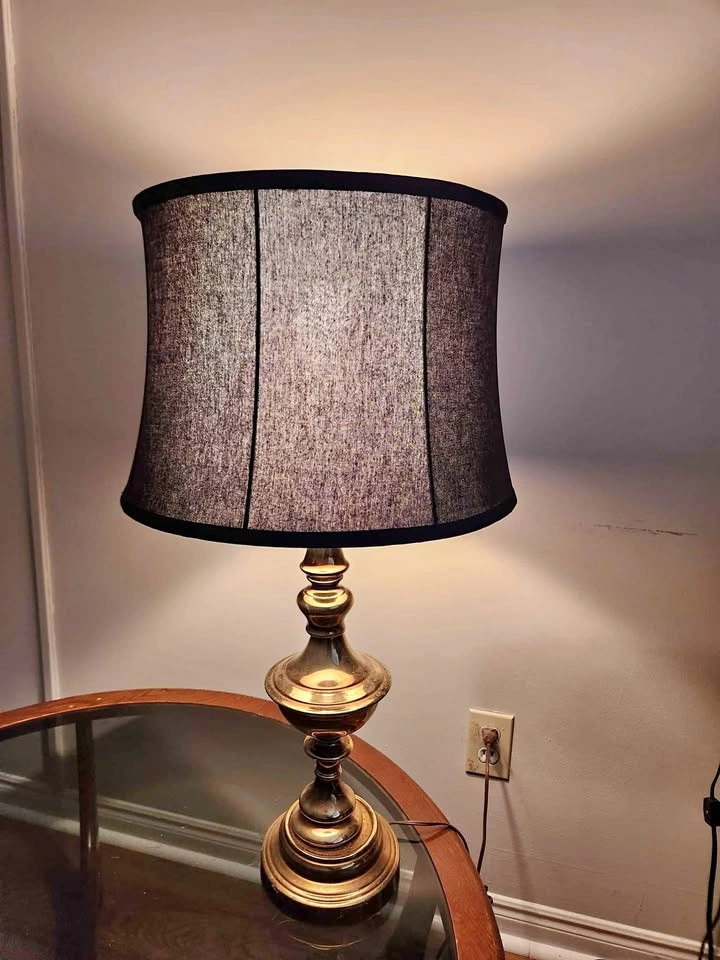 This brass table lamp is a retro piece purchased a long time ago at an auction. It is a timeless classic and is in great condition. Lamp shade and lightbulbs come with this piece.