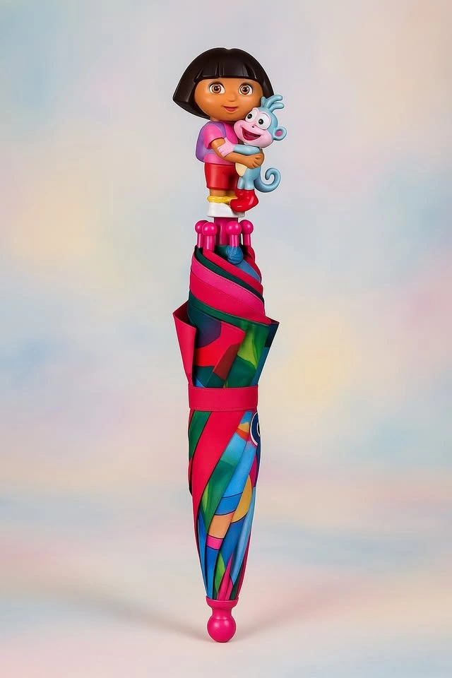 Does your mini explorer love splashing in puddles? This adorable umbrella will make every rainy day feel like a tropical adventure. It’s covered in vibrant artwork of Dora and her monkey pal (Boots), with a cute 3D handle shaped like Dora herself giving a hug. Perfect for kids who adore bright colours and playful characters! ✨ Description Charming design Panels are decorated with cheerful Dora & Boots scenes on pink and blue backgrounds, bringing instant smiles. 3D molded handle The handle features Dora hugging Boots – it’s more than a handle, it’s a tiny toy on top! Kid‑friendly size Approx. 55–65 cm (20–25 in) long when closed and roughly 85–90 cm (34–36 in) across when open, making it easy for little hands to manage. Smooth opening Manual slide mechanism with safety tips on the ends to protect curious fingers. Lightweight & sturdy Built to withstand gusts without being bulky – no tired arms here! Condition & price This cutie is gently used and still in lovely shape. The colours are vibrant, the frame is intact and the handle is secure (no rips or tears!). Asking $10 CAD – because who says adorableness can’t be affordable? Pick‑up details Located in Richmond Hill, Ontario. Happy to arrange local pick‑up or meet‑up along Yonge Street. Payment via cash or e‑transfer. Send me a message if you’re ready to make someone’s rainy days a lot more fun, or if you have any questions. Don’t let this charming umbrella just hang around – give it a new adventure buddy! 🌈✨