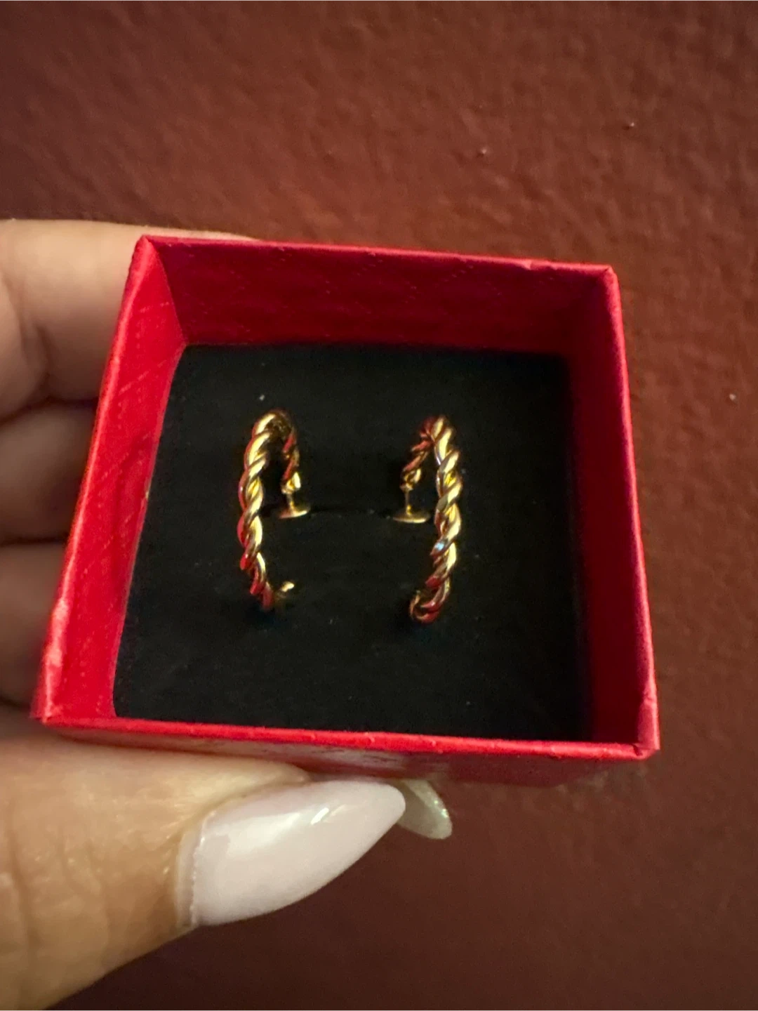 Buy & SellNew Gold tone Twisted Hoop EarringsNew Gold tone Twisted Hoop EarringsFreea pair of gold tone twisted hoop earrings. They come in a red box NewConditionNewWHERE TO MEETCheck LocationView MapSELLERverifiedBellaWilliamsburg1000+778 reviews2 chats·0 favorites·27 views