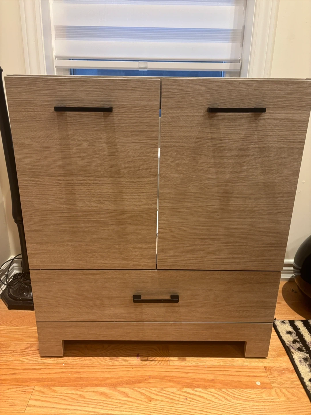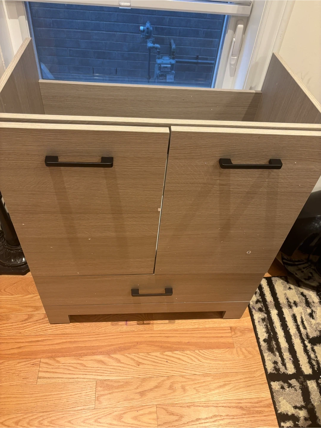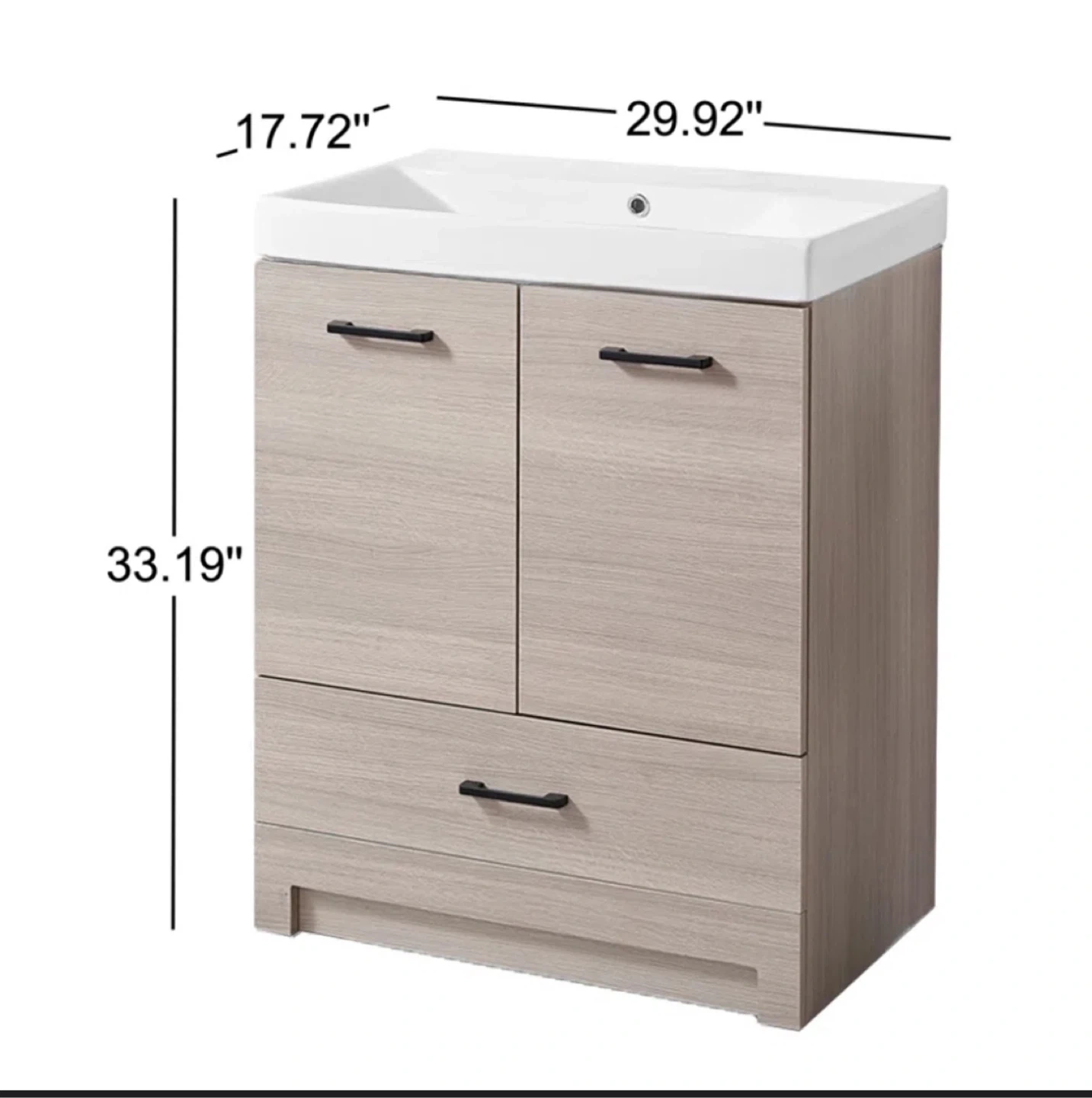 202Selling a Senuka 30-inch Oak Farmhouse Freestanding 2-Doors & 1-Drawer Single Bathroom Vanity. Without sink . The drawer measures approximately 29 inches wide. Available for delivery and pickup. Close to Delpark home center. DOES NOT COME WITH SINK AND FAUCET.