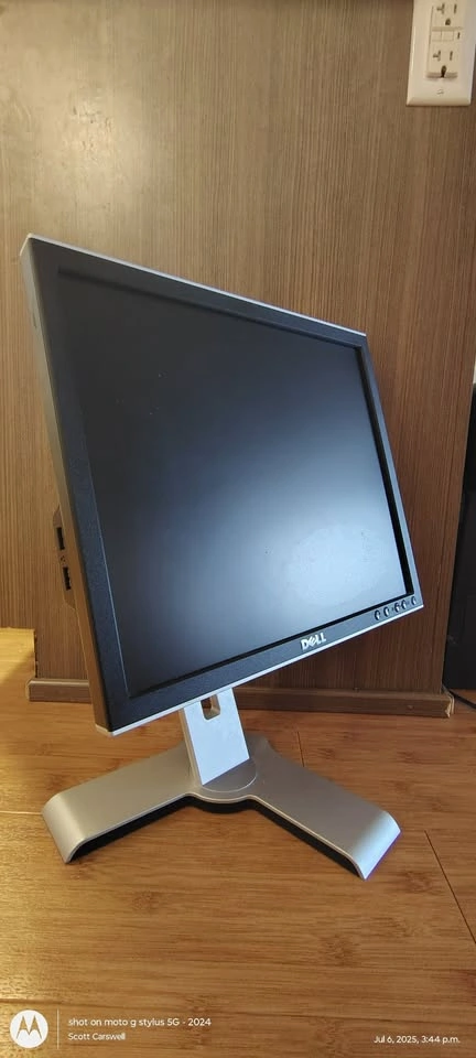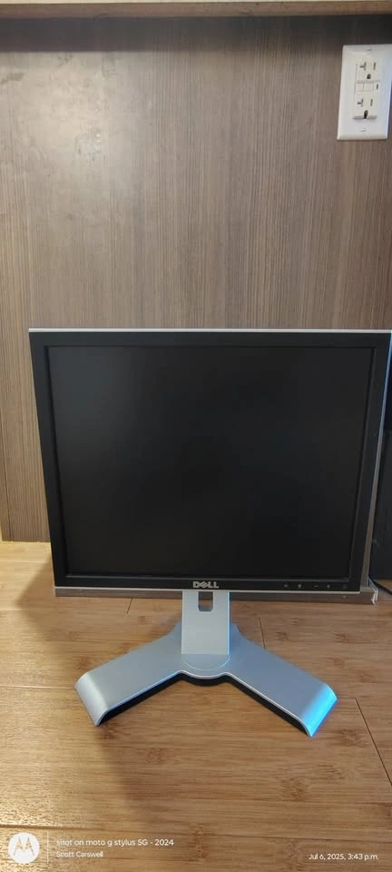 Selling a Dell 1708FP 17” LCD Monitor – clean, crisp display with a fully adjustable stand (tilt, swivel, rotate, and height). It’s perfect for a home office, security system, secondary screen, or vintage setup lovers. ✅ VGA & DVI ports ✅ Resolution: 1280x1024 ✅ 5:4 aspect ratio ✅ Rotates to portrait mode ✅ Sturdy Dell build quality ✅ Includes power & video cable This monitor still works like a charm – no cracks, no dead pixels, and buttons are fully functional. Great value for anyone needing a solid display without breaking the bank.