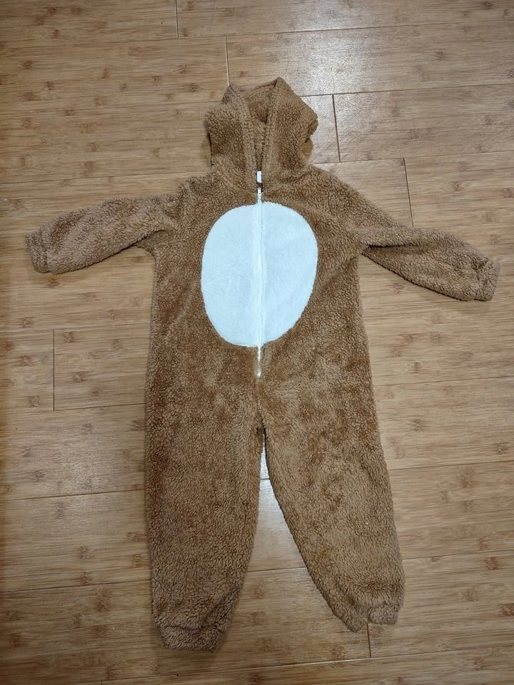 Get ready for some unbearably cute adventures! This fuzzy brown bear costume is soft, cozy, and perfect for dress-up days, Halloween, school plays, or just rawr-ing around the house. Size: 6 (fits most 5โ6-year-olds) Super soft teddy bear texture ๐งธ Easy front zip for quick changes Includes an attached hood with tiny bear ears (adorbs!) Warm enough for outdoor trick-or-treating or chilly-day play Gently worn and in great condition โ no tears or stains, just pure fuzzy fun! ๐พ Let me know if you're interested!