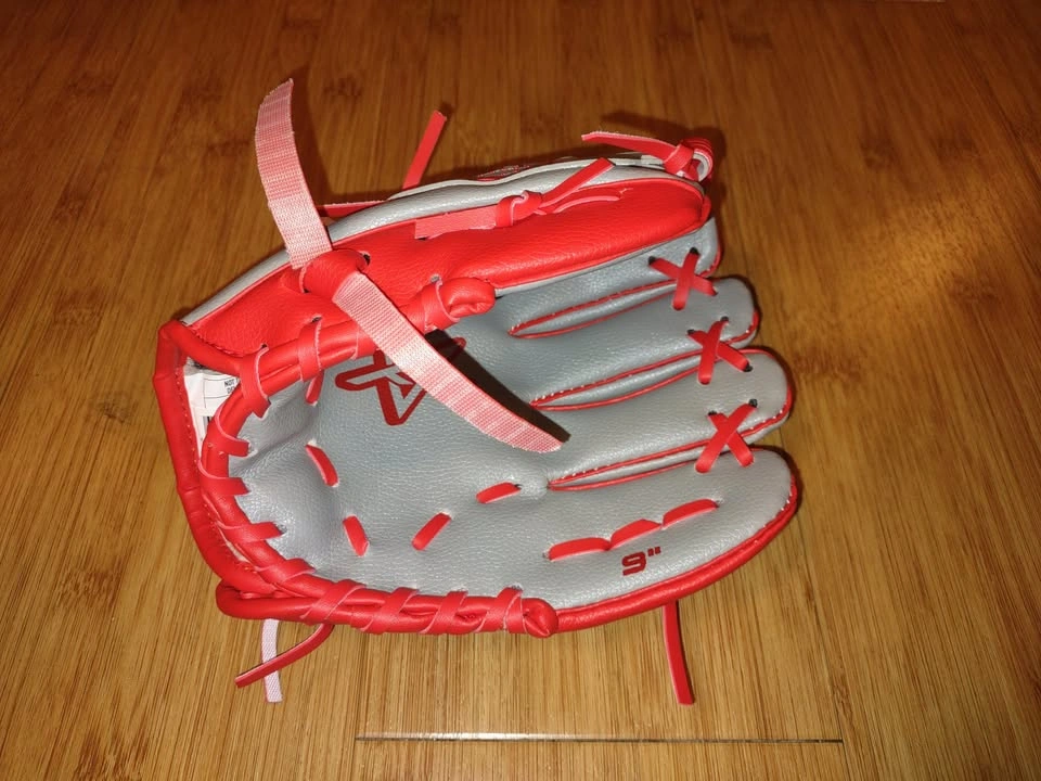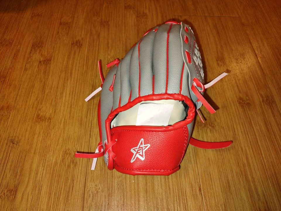 Ready to catch some fun? This youth-sized baseball glove is brand new and perfect for little leaguers or beginner players! With a bold gray and red color combo and embroidered star logo, it’s got big league style for little hands. 🧤 Features: 9-inch All-new condition – never used Soft, durable synthetic leather Eye-catching red laces and star stitching Ideal for T-ball or early baseball learners Lightweight and flexible – easy to close and control 🎁 Great gift for a young athlete or budding ballplayer. Step up to the plate and grab this glove before it’s gone!