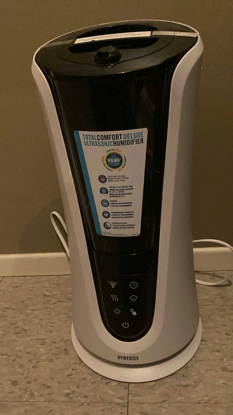 45Keep your home feeling fresh with this HoMedics Total Comfort Deluxe Ultrasonic Humidifier! It's designed for total comfort and features ultrasonic technology. It also comes with a demineralization cartridge for optimal performance. Has pad for essential oils to use with the machine. Brand New Never Used Paid :$140 from Costco Pick up only Beatrice and Wilson Oshawa