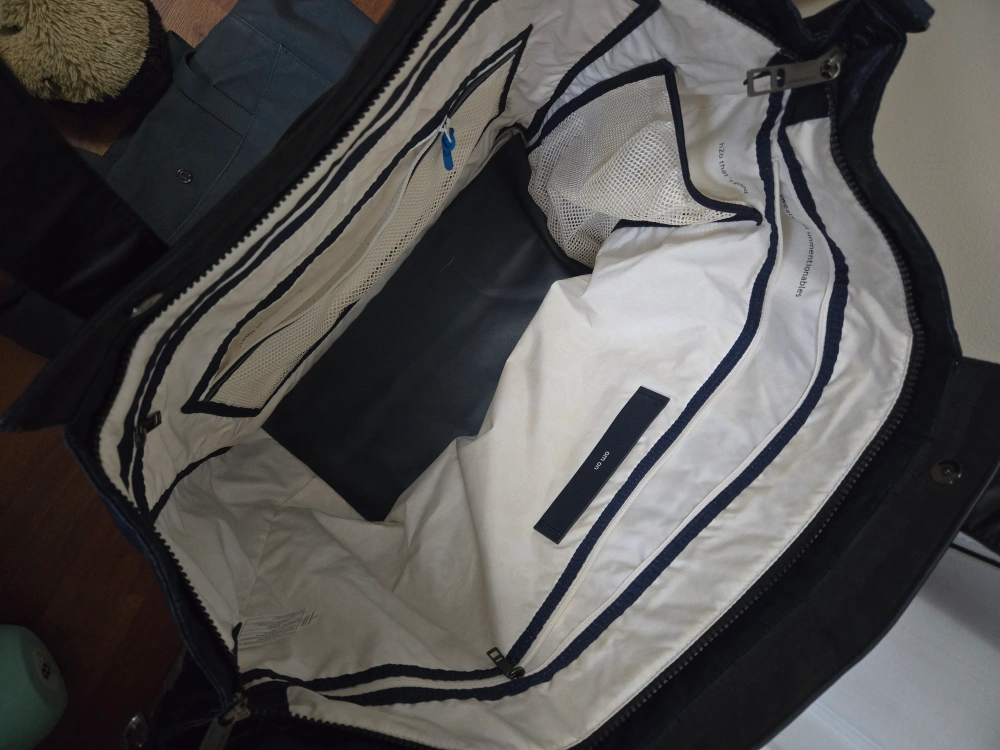 Lululemon Carry Me Om tote in rare Inkwell Paisley/Black colourway. This bag is perfect for carrying all your essentials! It features a sleek black design with multiple compartments inside, including a padded laptop sleeve and mesh pockets for smaller items and a water bottle. Front zips can be opened to hold a yoga mat. Great for work, gym, or everyday use! #tote #totebag #gymbag #lululemon