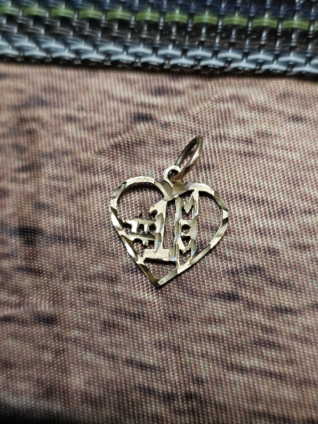 1000+Selling a heart-shaped pendant with initials cut out. It's a lovely piece!