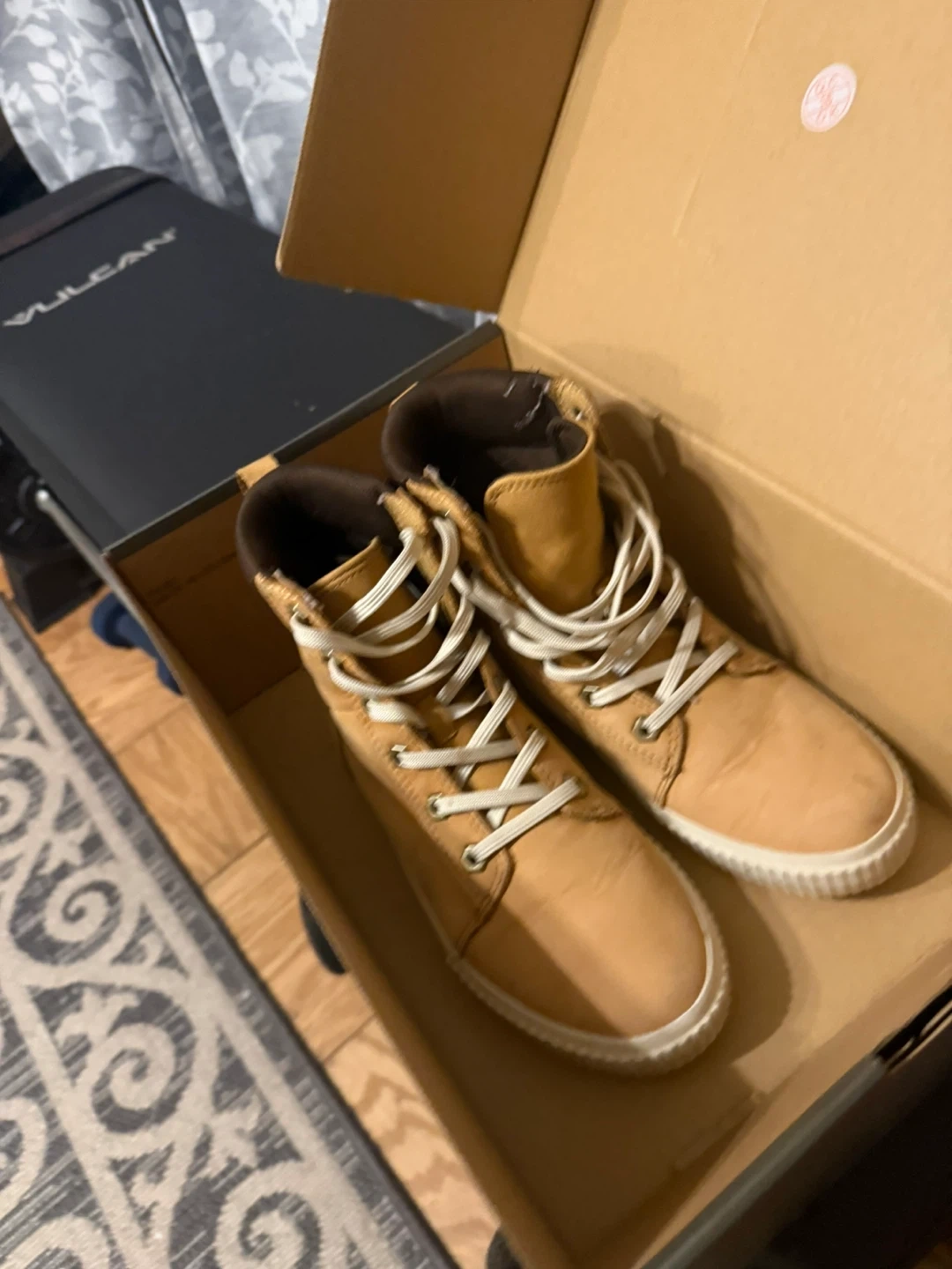 60Selling a pair of Timberland ankle boots in women's size 5.5 US. They come with the original box. These boots are in good condition and ready for a new home!