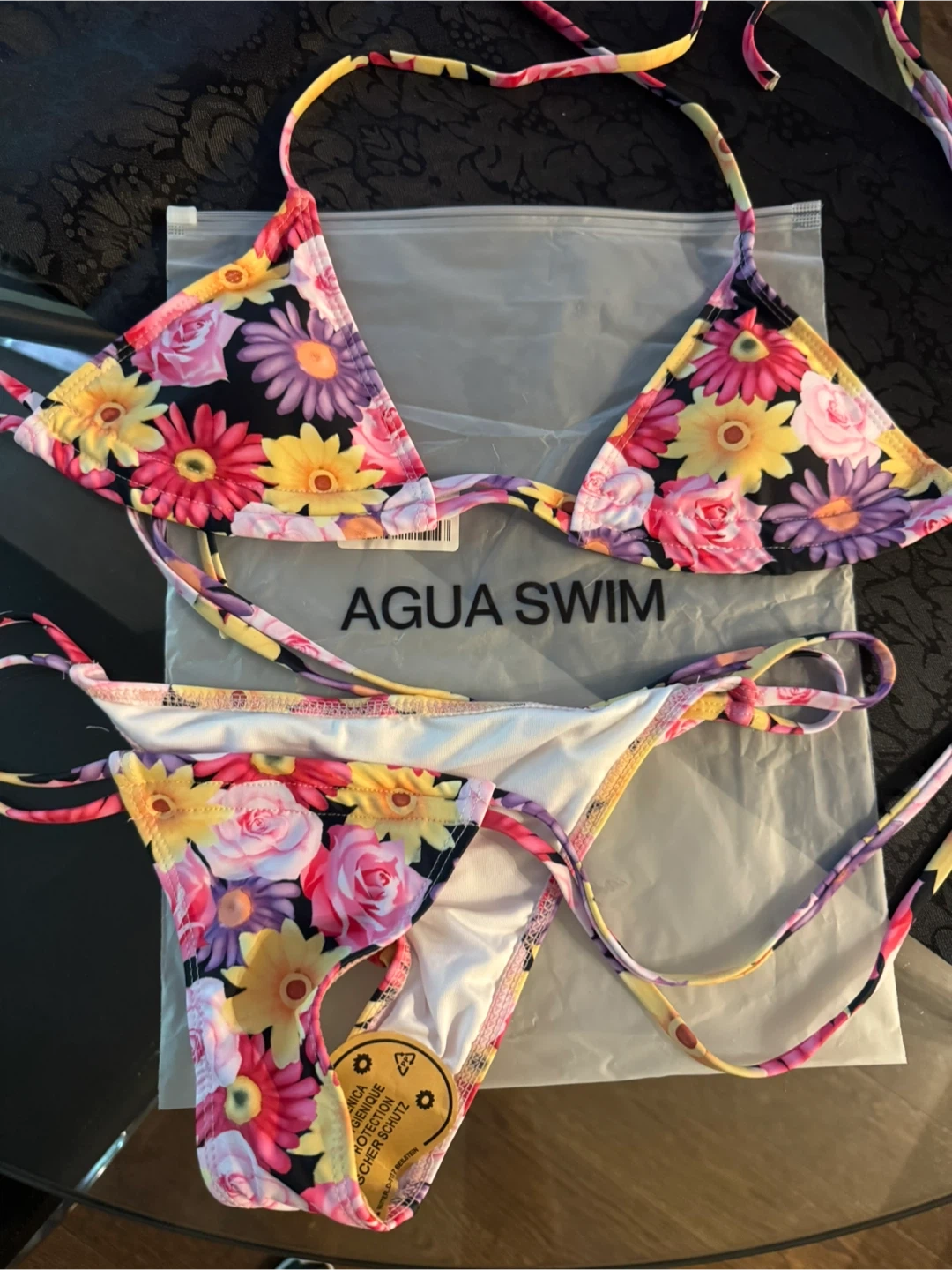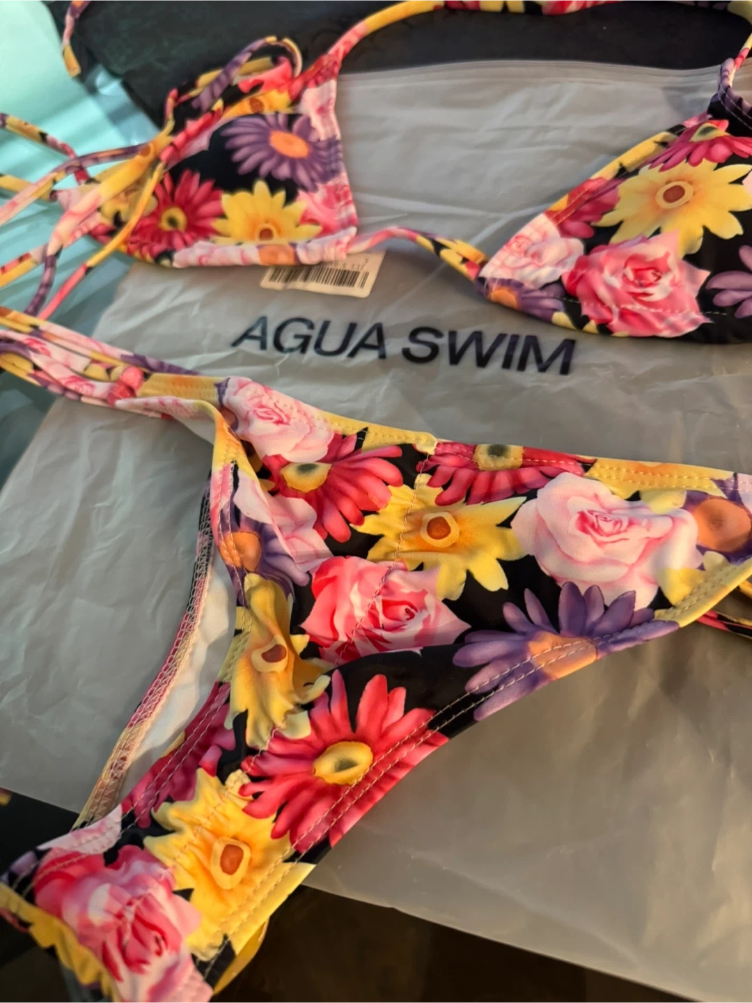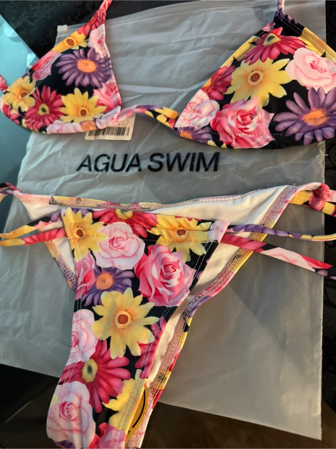 This Agua Swim bikini set features a vibrant floral pattern and scrunch bum. So cute I just bought two on accident. It’s brand new with tags. Originally paid $130 Aus. Perfect for summer days at the beach or pool!
