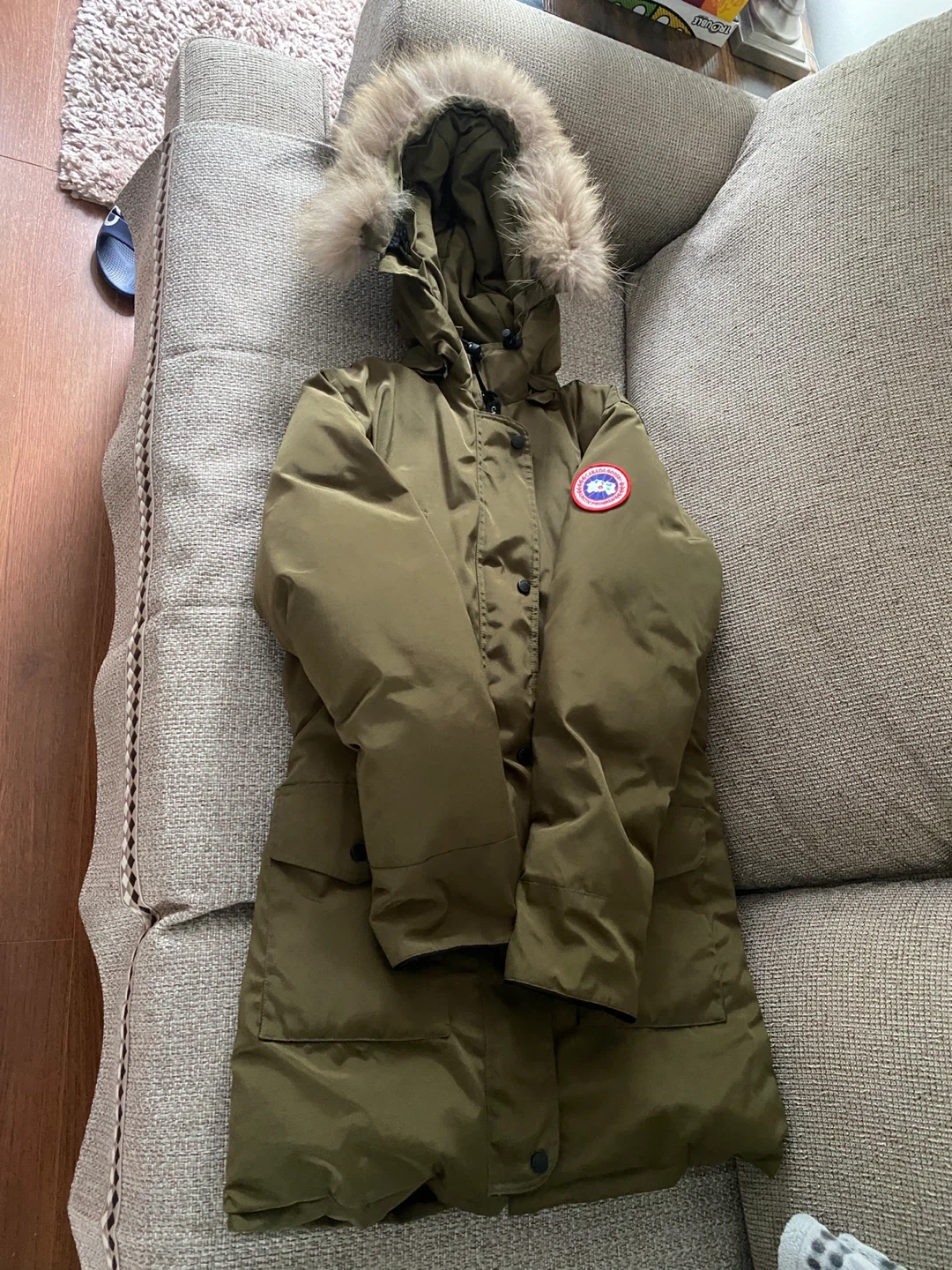 Selling a Canada Goose parka in olive green. It's in great condition and super warm for the Canadian winters! The size is women’s M. Let me know if you have any questions!