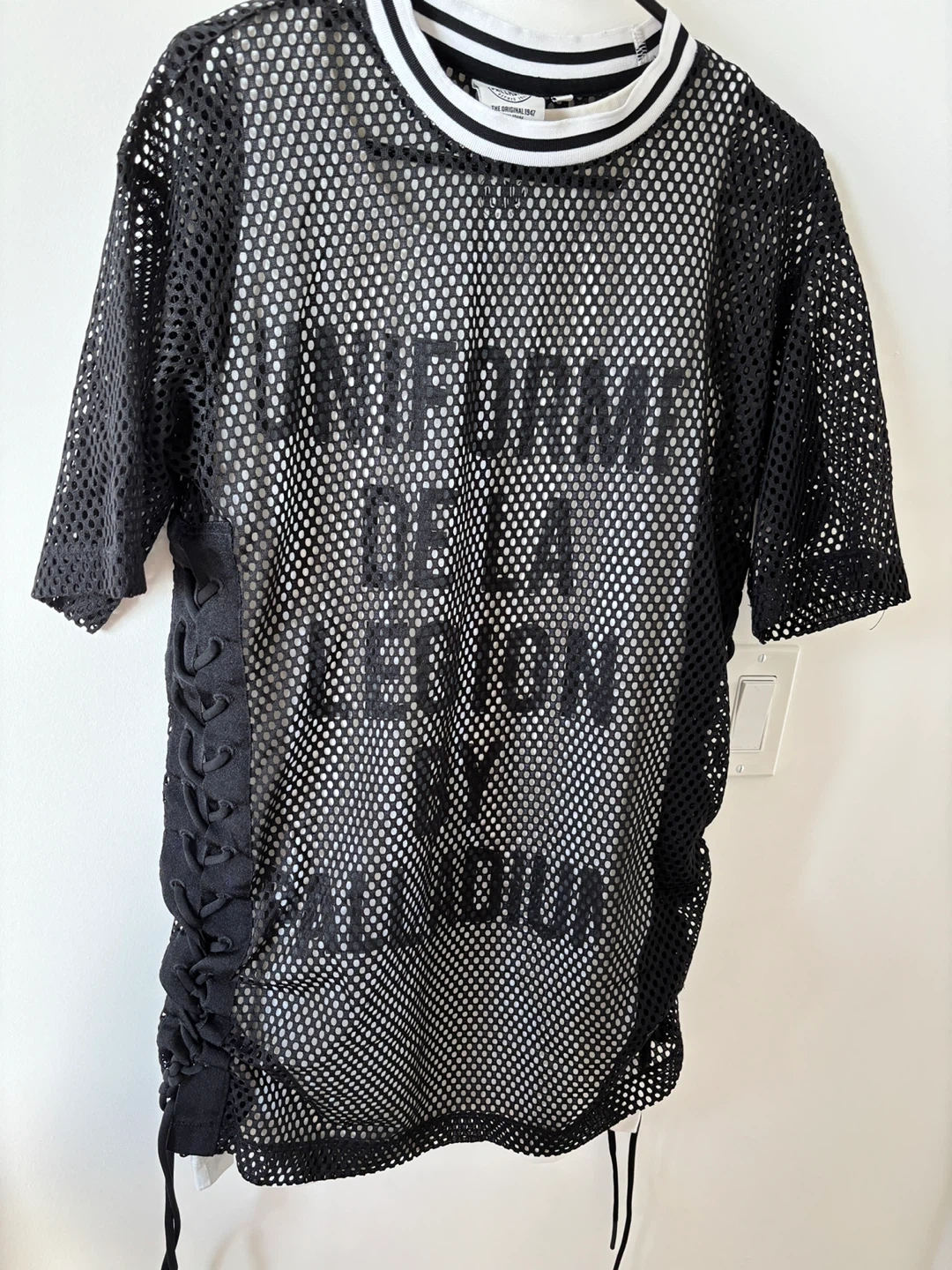 Selling a cool mesh top from Uniform Of La Legion By Mihara Yasuhiro! It's a unique piece with a sporty vibe and interesting detailing on the sides. Perfect for layering or making a statement