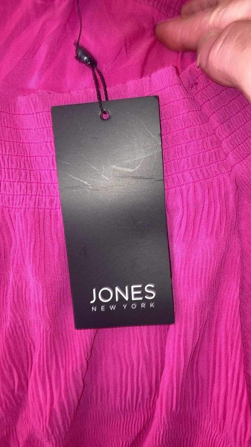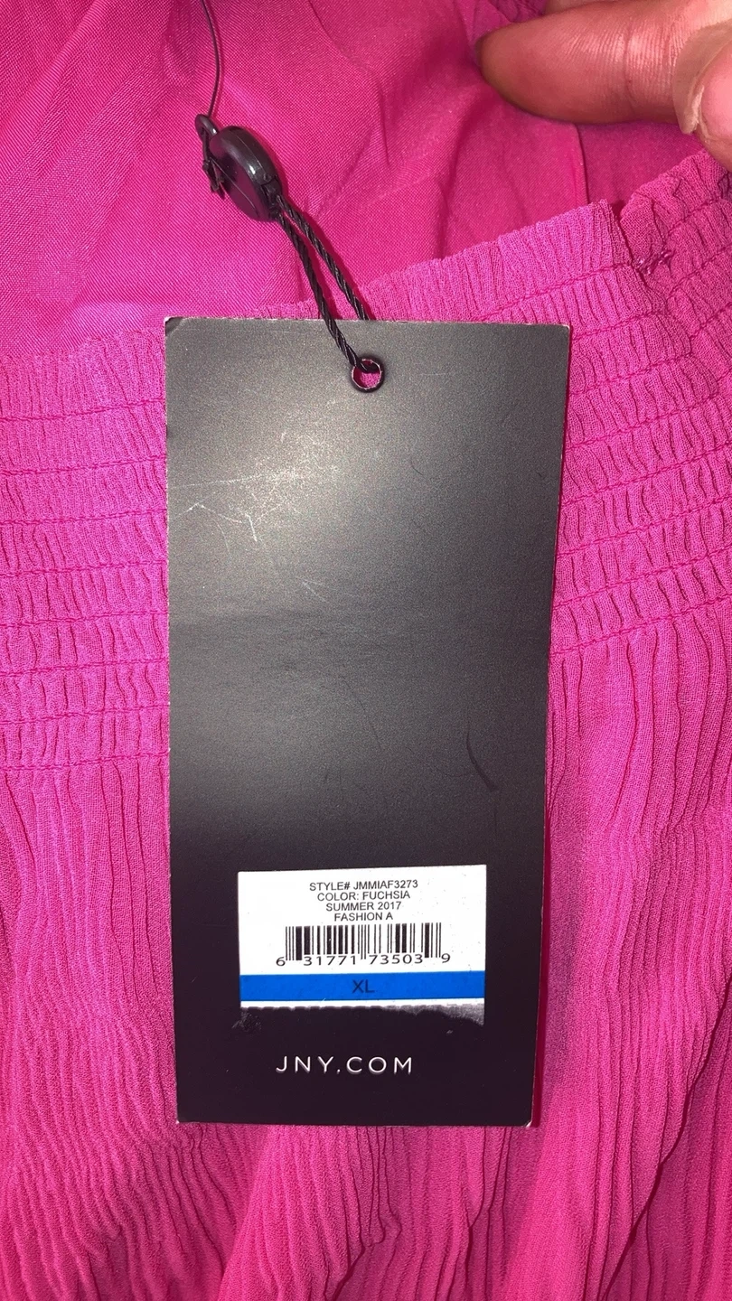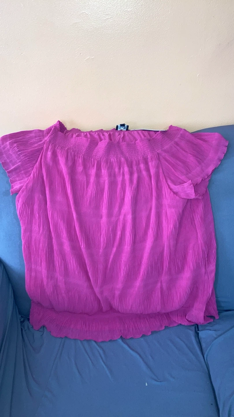 This is a Jones New York off-the-shoulder top in size XL. It's a beautiful pink colour and has a crinkled texture. The style number is JMMAF3273 and the colour is fuschia. This top is new with tags! Pickup near Islington and Steeles