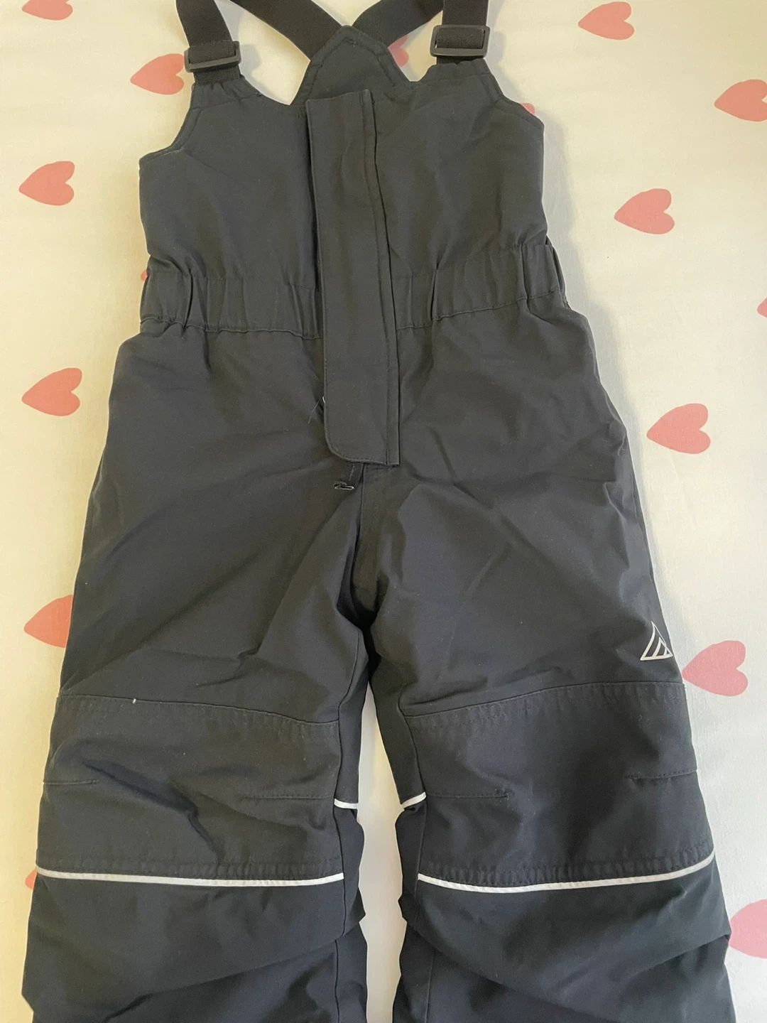 These black snow pants are in great condition and ready for some winter fun! They feature adjustable straps and reflective stripes at the bottom for added safety. Perfect for keeping your little one warm and dry during snowy adventures