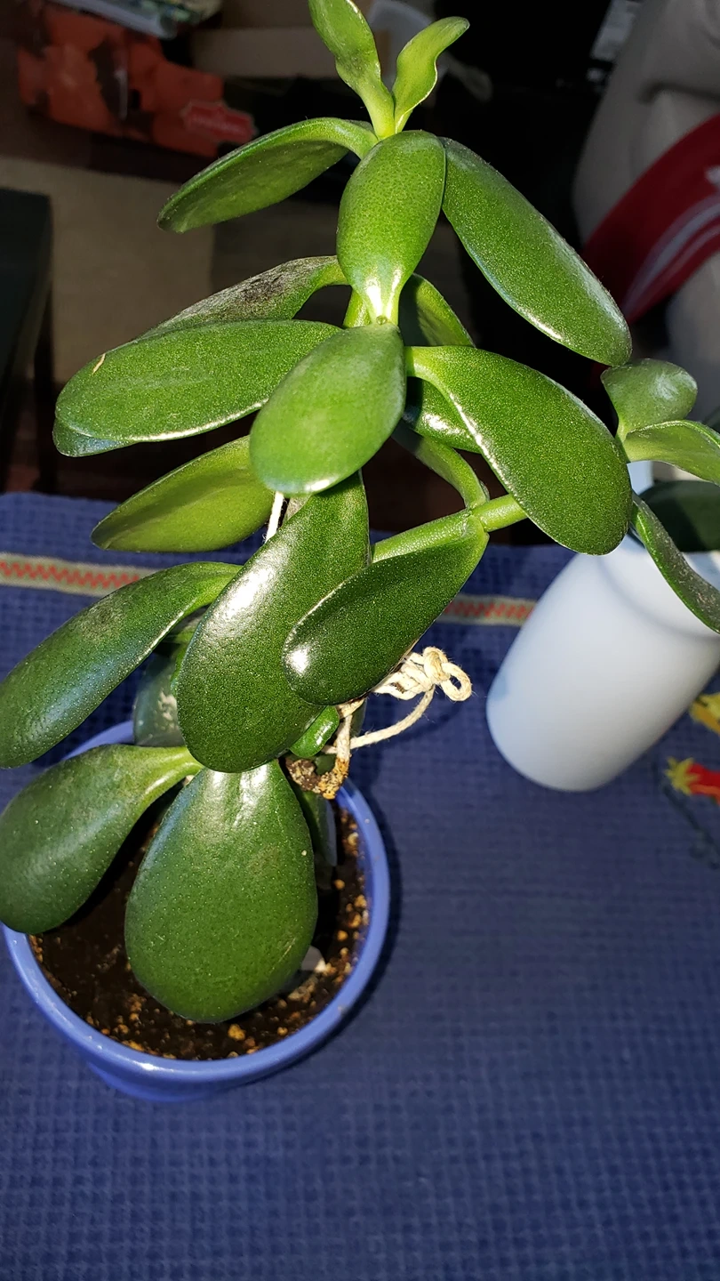 Jade Plant or Good Luck plant. With pot for 12 Dollars. Easy care for indoor plant or deco. Water literally every blue moon and fertilize during active season. They grow better if you chat and sing with it. Also being call Money Tree. Can last upto 40 years if you take good care of the Lucky Tree!