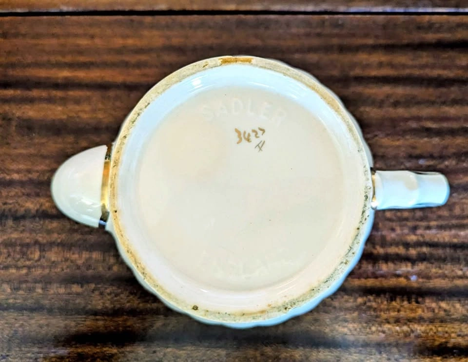 Good vintage condition! Teapot measures 22.25 cm from spout to handle and stands approx. 17.78 cm high with lid. Holds 4 cups. Sugar bowl measures 8.89 cm in diameter at the widest and stands 7 cm high. Creamer is 10.5 cm from spout to handle and stands 8.3 cm high. No chips or cracks!