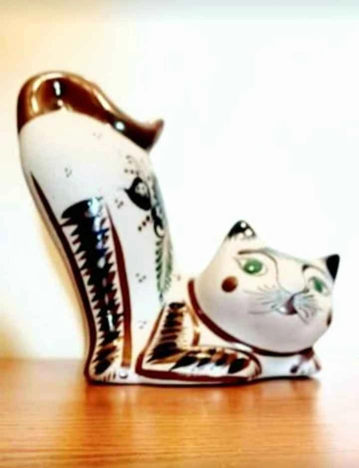 Rare, Hand Crafted, Glazed, Folk Art Signed Artist : Romero Stunning , Decorative Tonala Stretching Cat. Decorative, Household Water Bottle For Size Reference Mint Condition , no chips or cracks Please check out my other posts