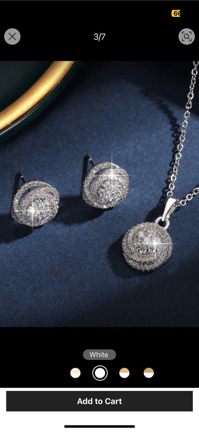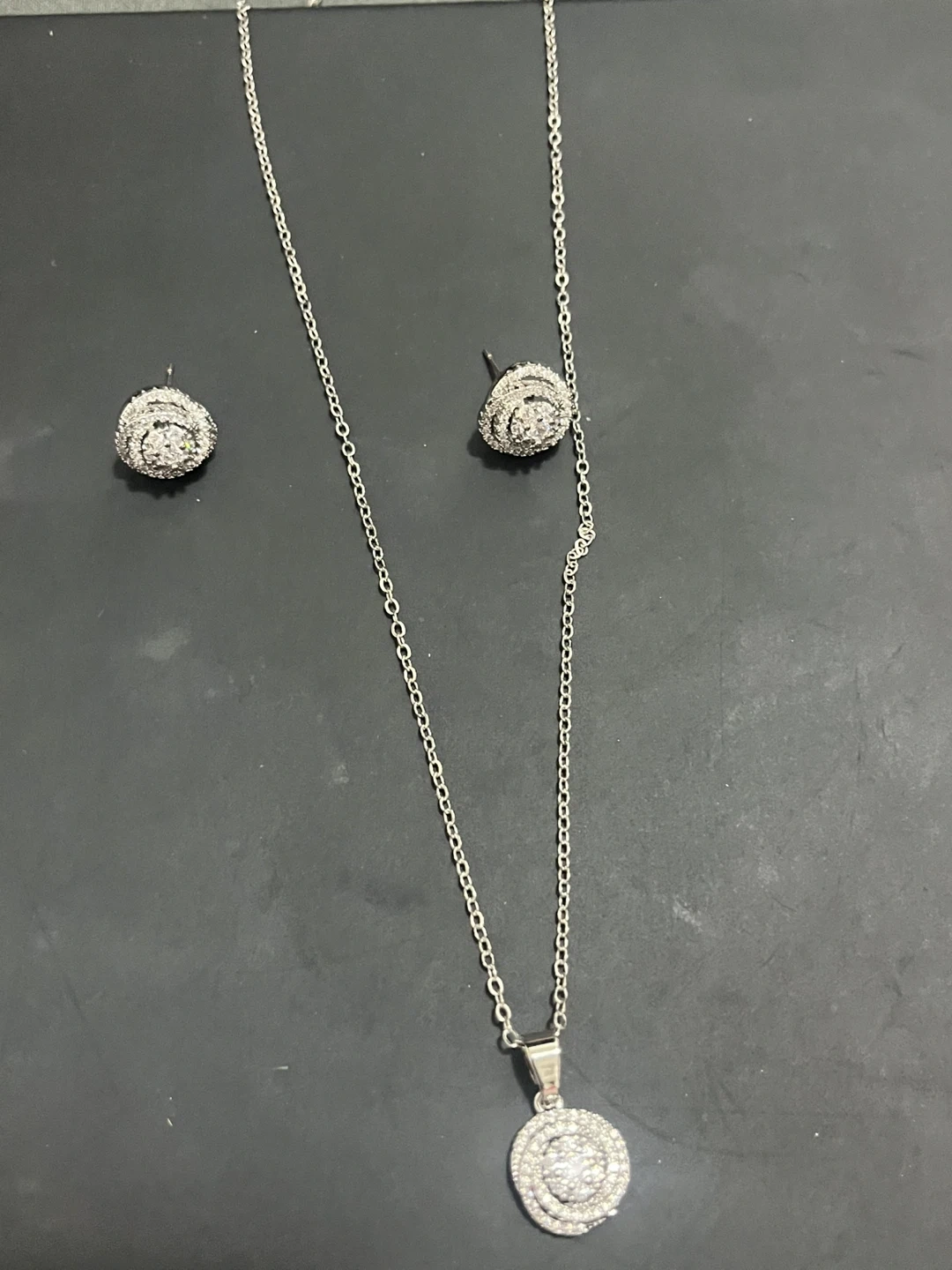 Selling a beautiful necklace and earrings set in white. The set features a delicate chain necklace and matching stud earrings, perfect for adding a touch of elegance to any outfit