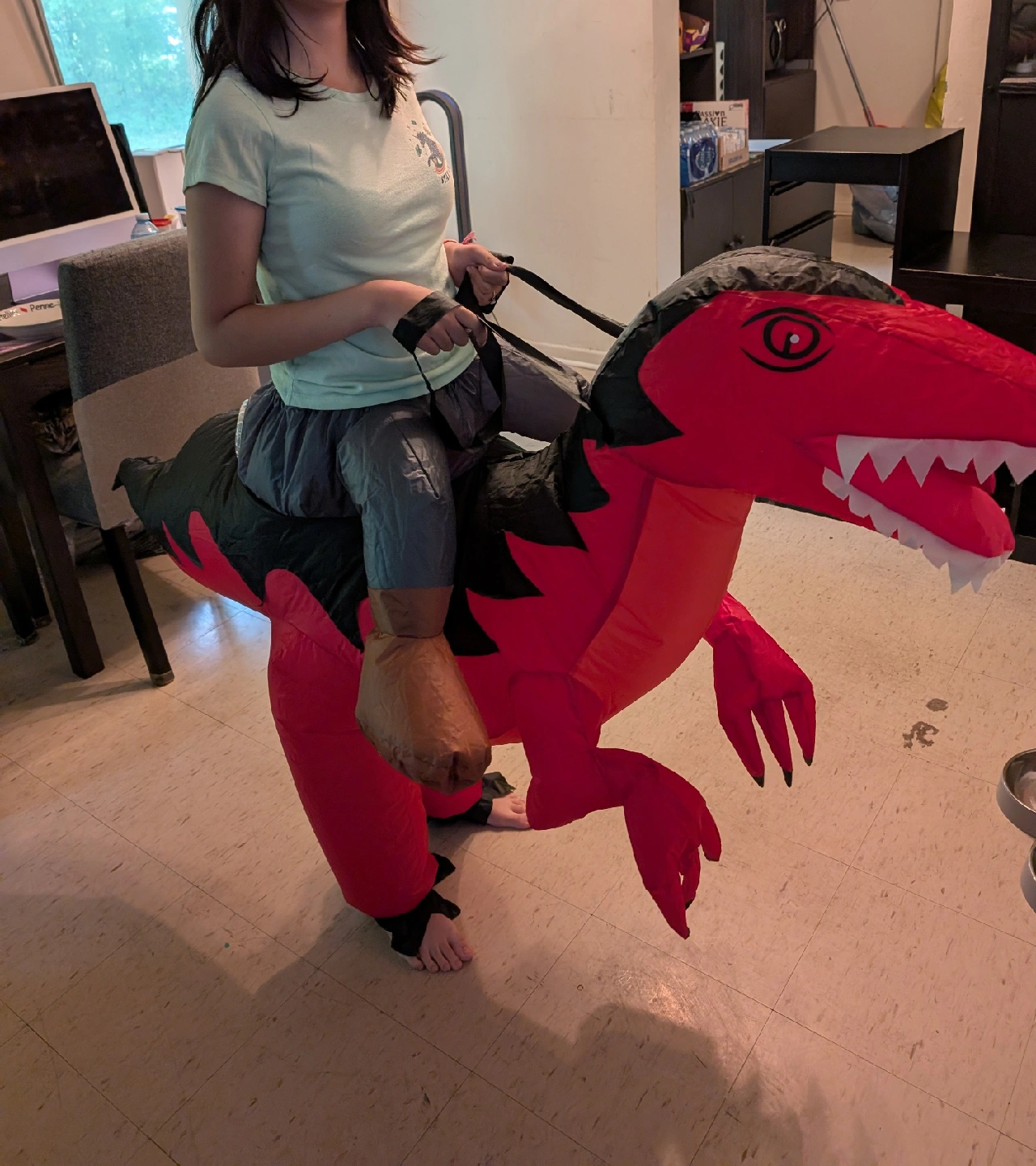Get ready for Halloween with this fun inflatable velociraptor costume for kids! It's red and one size fits most. Needs 4 AA batteries to work! Pick up or able to meet at a TTC station!