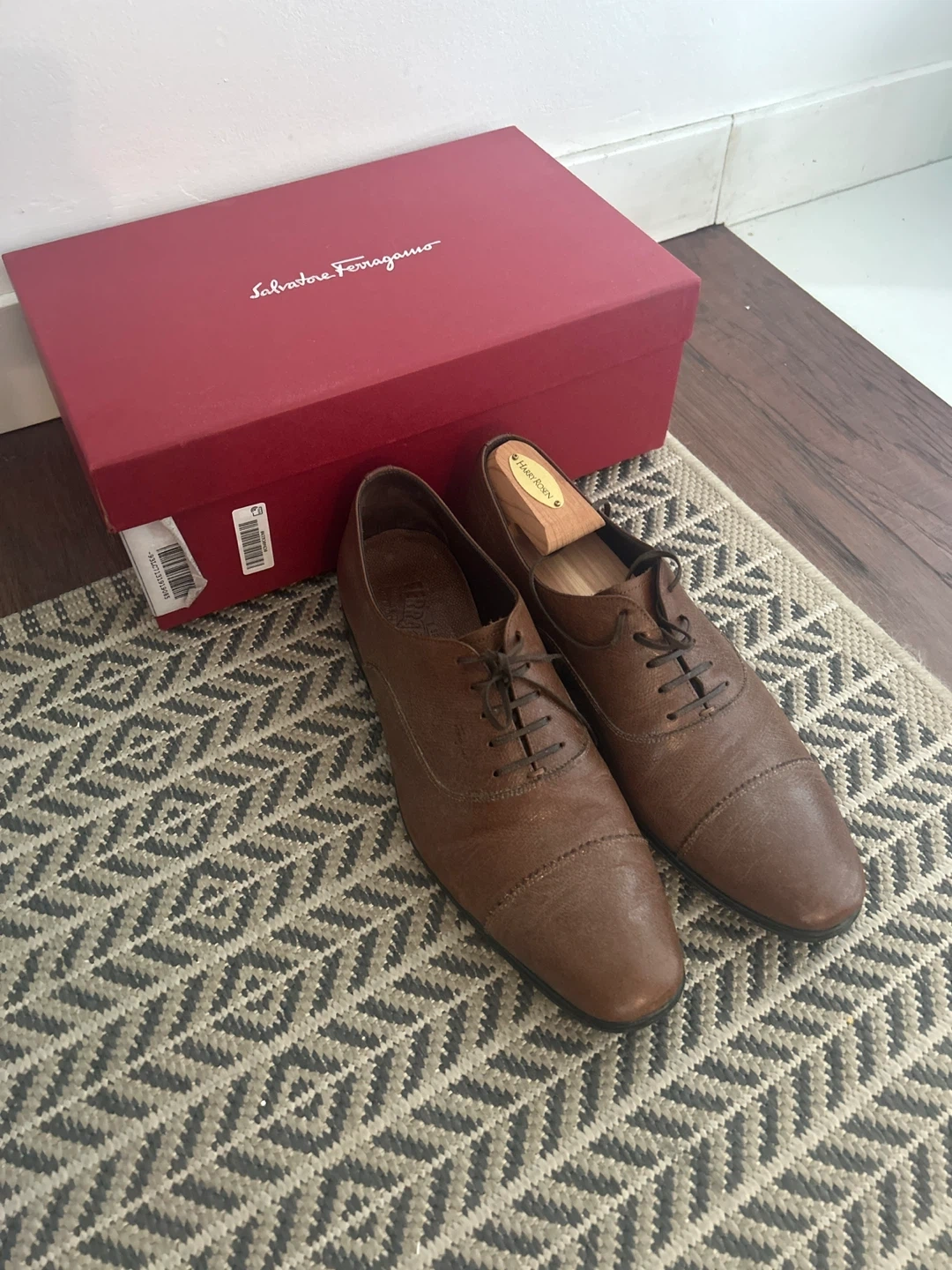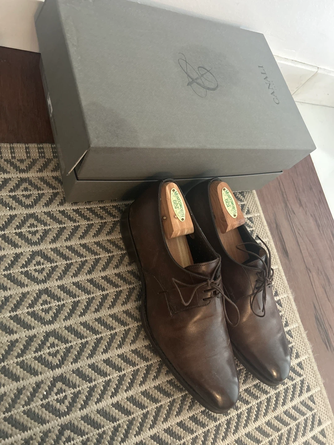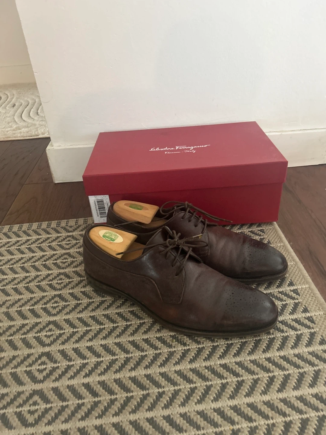 Selling a pair of Salvatore Ferragamo dress shoes in brown leather. They come with the original box. Please see photos for condition and details! Also 2 pair of Canali Dress shoes as well $650 for all 3