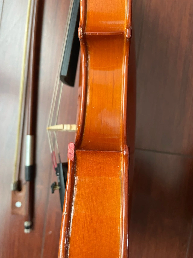Violin for kids size 1/4 or 48cm. In working condition but has some dings on the body and a fixed broken bow.